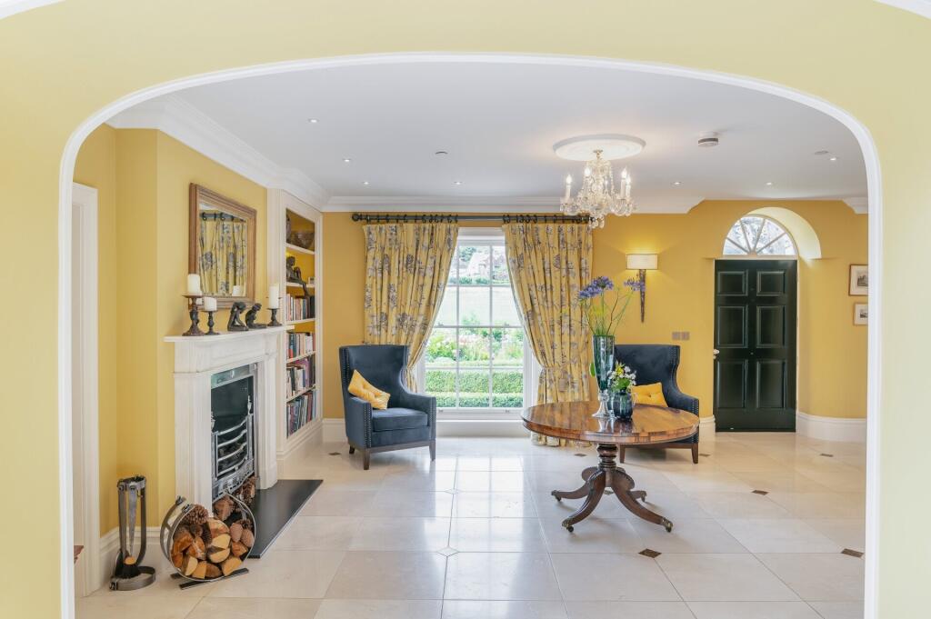 Marble-floored entrance hall with underfloor heating and Chesney fireplace
