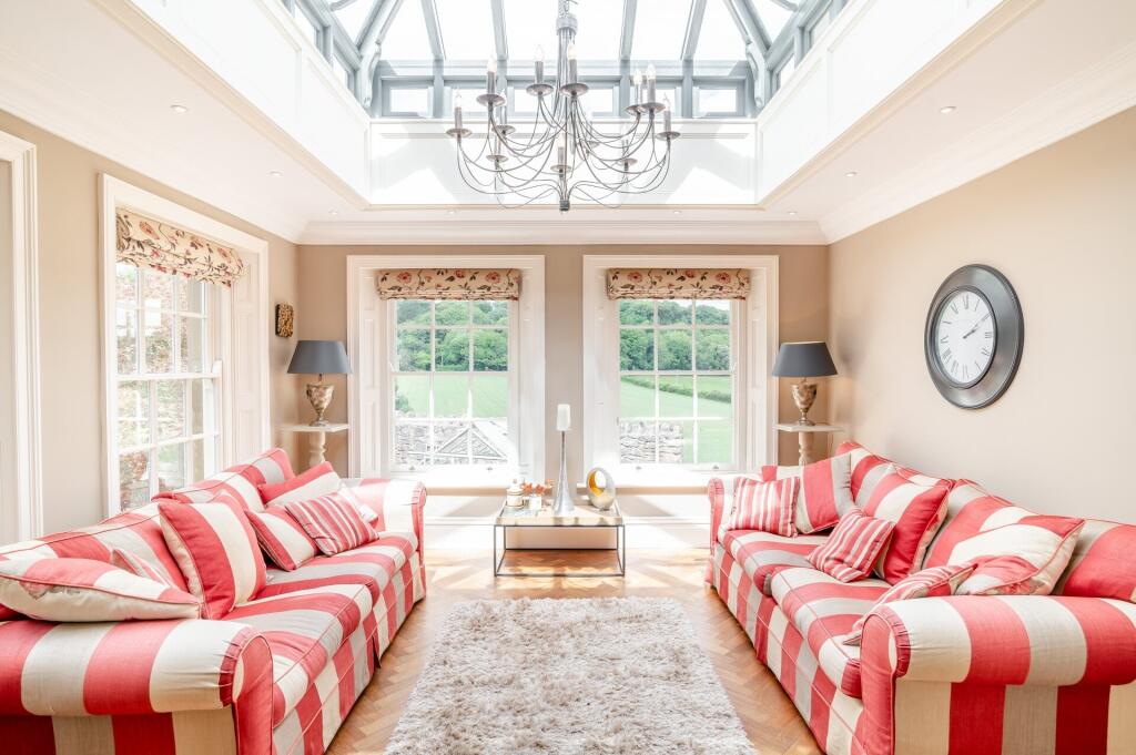 Step inside Stoulgrove House and you are immediately enveloped in an atmosphere of grandeur and warmth. The reception hall, the very heart of the home, is both dramatic and inviting. Featuring a showstopping staircase rising to a statement chandelier, framed by full-height windows that flood the space with natural light and offer uninterrupted views across the landscaped country gardens.