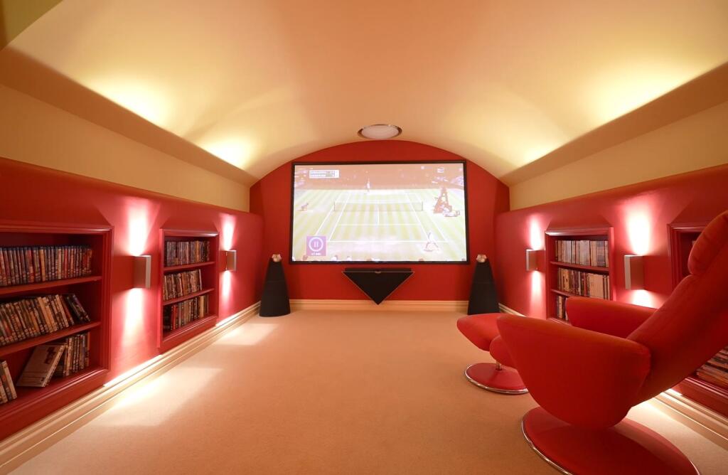 For the discerning film enthusiast, the purpose-built cinema room offers an immersive, state-ofthe-art viewing experience, complete with a Bang & Olufsen surround sound system and a Sim 2 Grand Cinema projector.