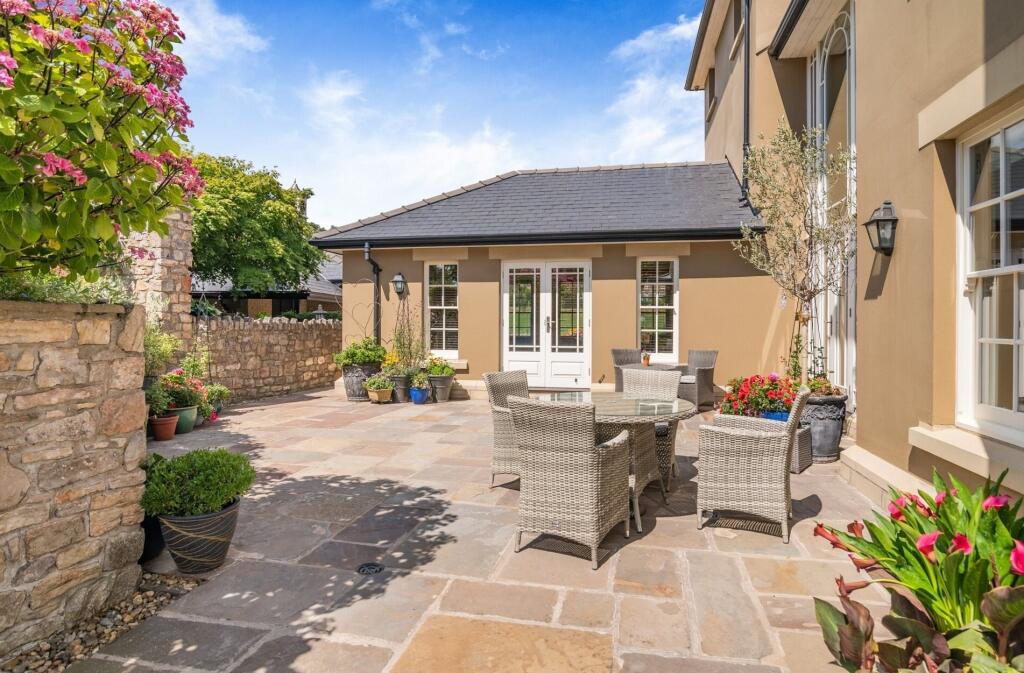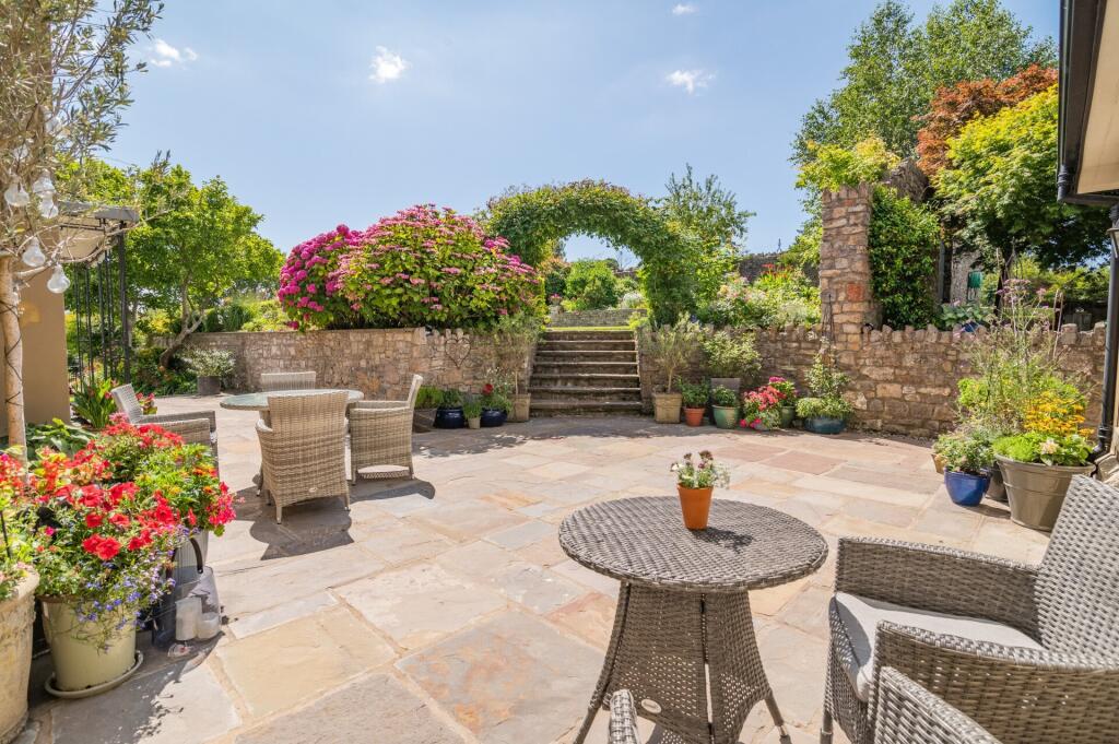 Set within approximately six acres, the gardens are nothing short of spectacular, thoughtfully crafted to create a succession of intimate, split-level garden rooms and sun-drenched patios. These outdoor spaces include a formal parterre, secluded courtyards, charming gravel gardens, a delicate rockery, and a serene pond gently nourished by a soothing waterfall. Mature specimen trees, a fruitful orchard, and graceful rose arches frame sweeping lawns and vibrant borders, bursting with seasonal colour and texture, offering year-round interest and endless opportunities for peaceful contemplation or elegant entertaining.
