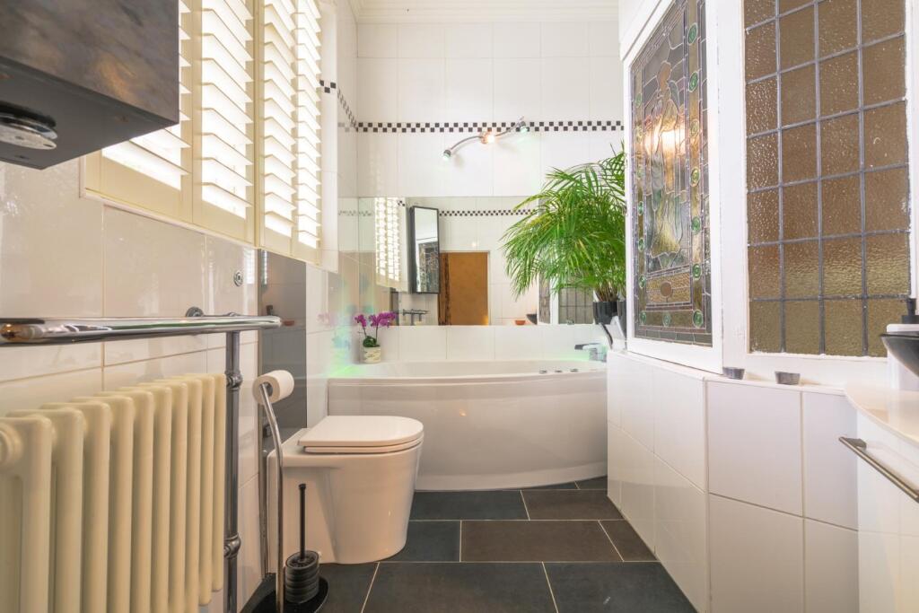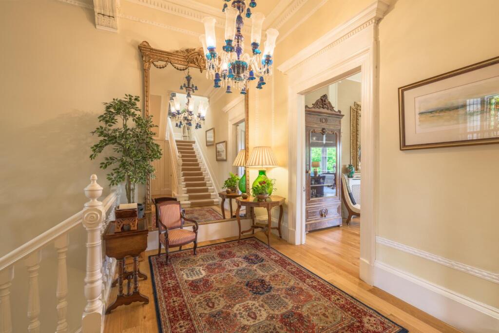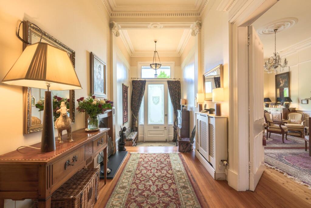 From the moment you step into the impressive entrance hallway, the home's scale and elegance are unmistakable. Rich in period detail, it retains a wealth of original features including intricate cornicing, grand fireplaces, high ceilings, spectacular stained glass, and elegant bay windows that flood the interiors with natural light.