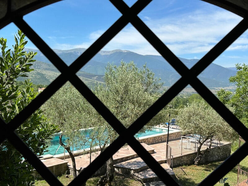 It has 7 bedrooms and 5 bathrooms, besides a kitchen, sitting rooms and private dwelling, obtained in the ancient castle after the renovation by the current owner. It has an outdoor swimming pool with solarium terrace, a partly paved garden, an ancient neviera, fundamental in the Middle Ages for storing snow for warmer periods; a plot of land of about 2.5 hectares with about 200 centuries-old olive trees. In the property there is currently Wi-Fi and the utilities are all connected.