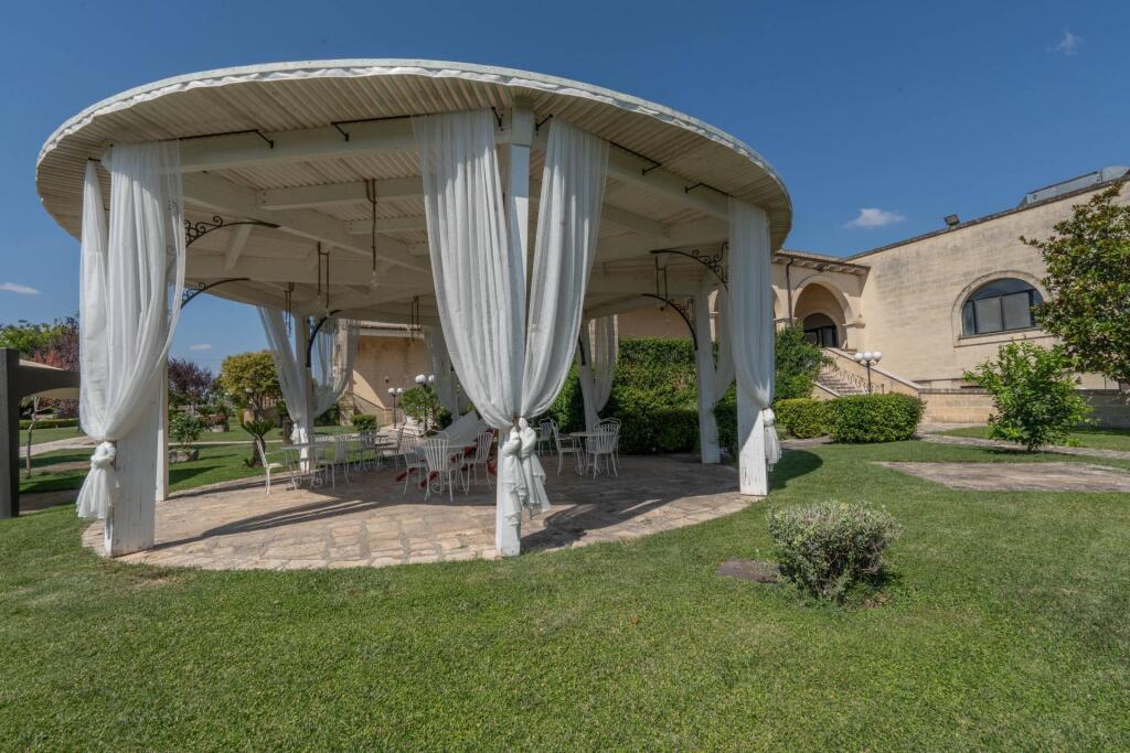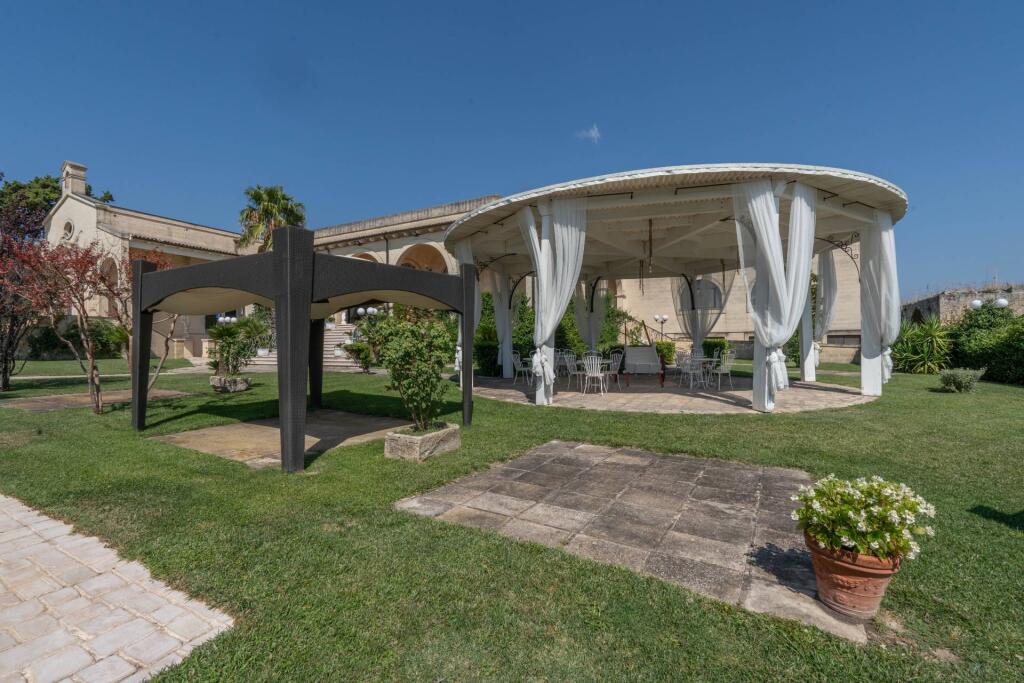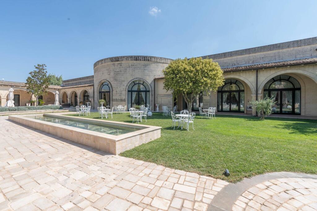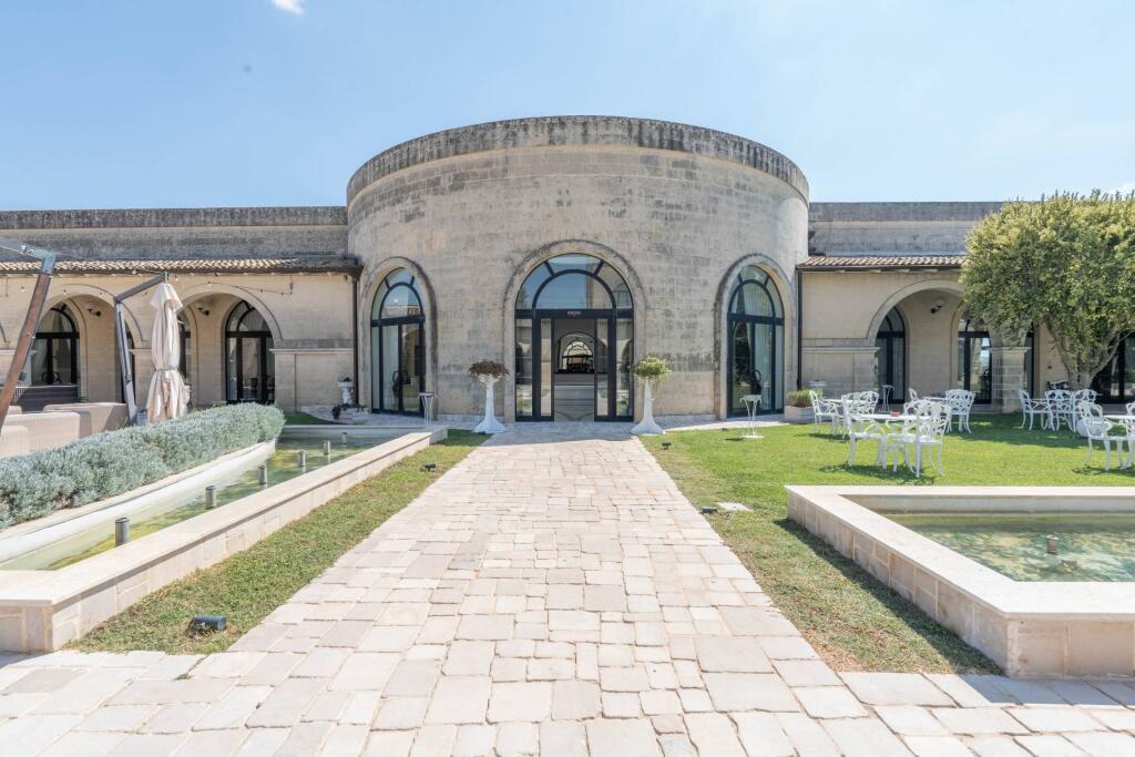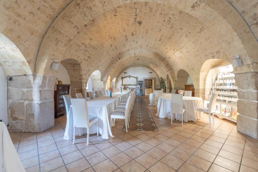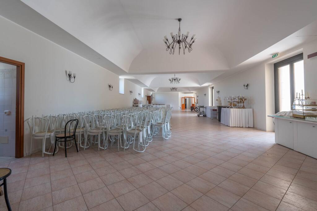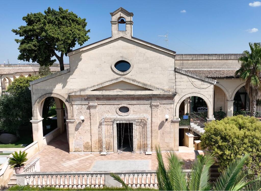 Now operating as a prestigious hospitality venue, the masseria spans multiple levels. The ground floor features a reception area, two restaurant dining rooms, a professional kitchen and utility areas. The first floor is dedicated to the guest rooms, each one meticulously renovated to preserve the spirit of the structure while ensuring modern comfort. The upper level hosts service quarters and storage spaces. Enhancing the property’s appeal are two stunning event halls — the elegant Sala Cupola, with its frescoed dome and oval architecture, and the spacious, light-filled Sala Templari. A consecrated chapel, covered porticoes and landscaped outdoor areas complete the picture, offering the perfect setting for weddings, corporate retreats or exclusive gatherings.