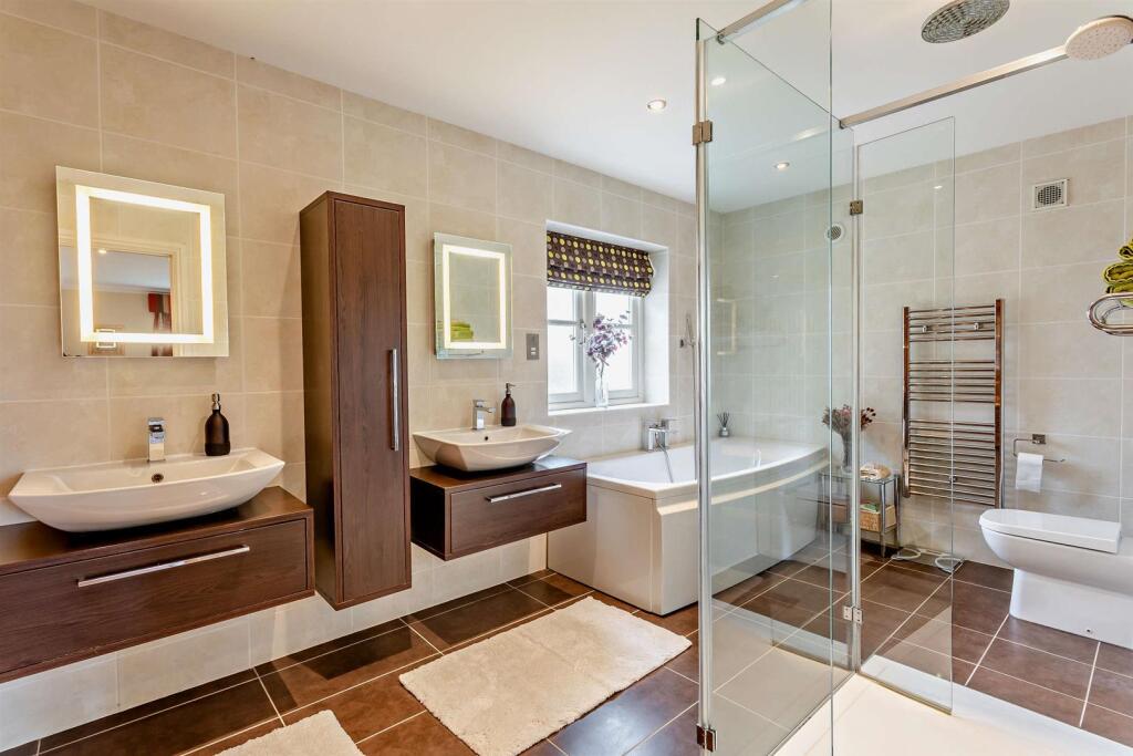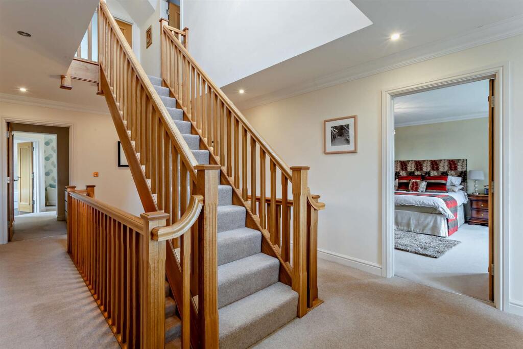 The second floor offers a fourth bedroom suite, a cinema and a gym, either of which could be bedrooms or offices. These have balconies overlooking the garden and fields The ensuite to the bedroom, could be reconfigured to a Jack and Jill arrangement.