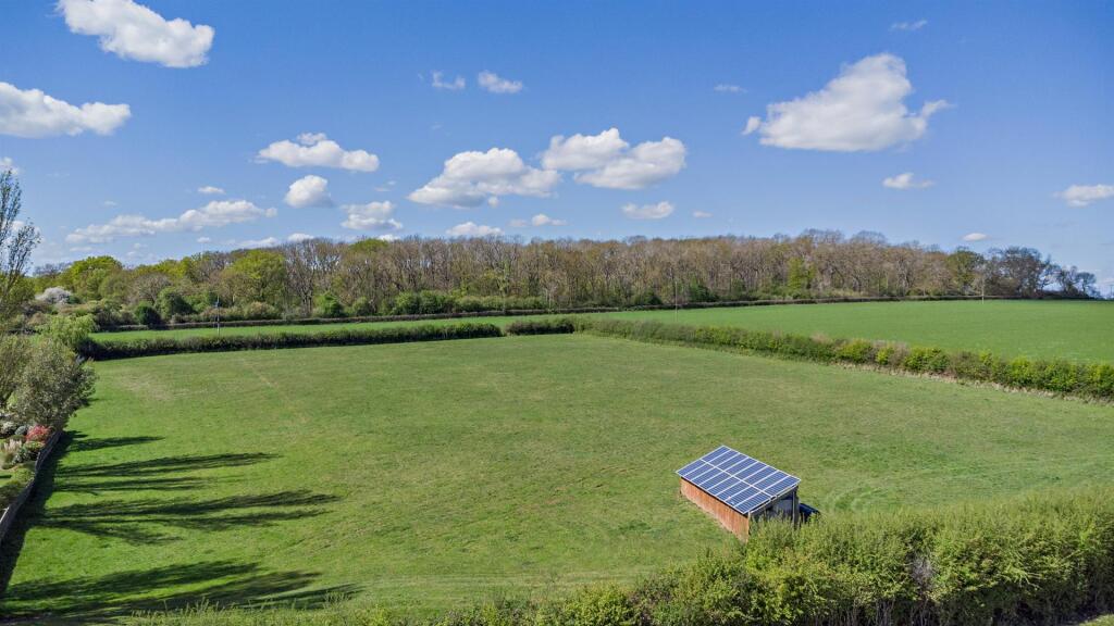 The beautifully designed gardens amounting to about 0.75 acre, wrap around the house. A sandstone patio spans the rear and can be accessed from a number of points. Steps lead up to a terrace beside the extensive lawn, set to capture the sunshine throughout the day. The lawn has shrub borders. The paddock of 2.65 acres is a convenient rectangle, beyond the garden, and has high hedging to each boundary.