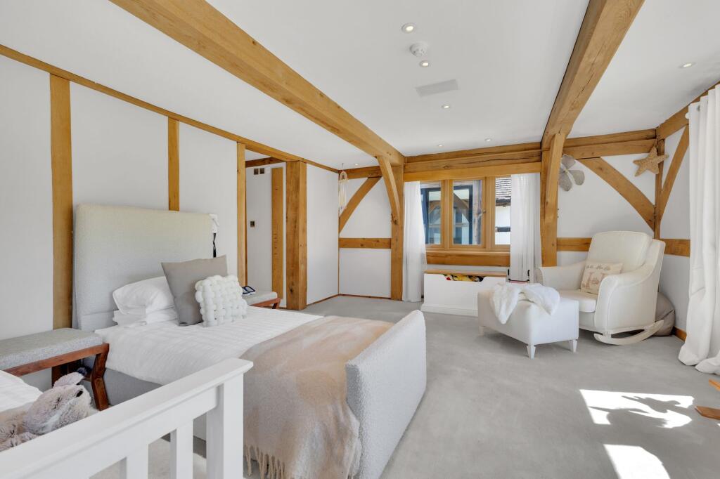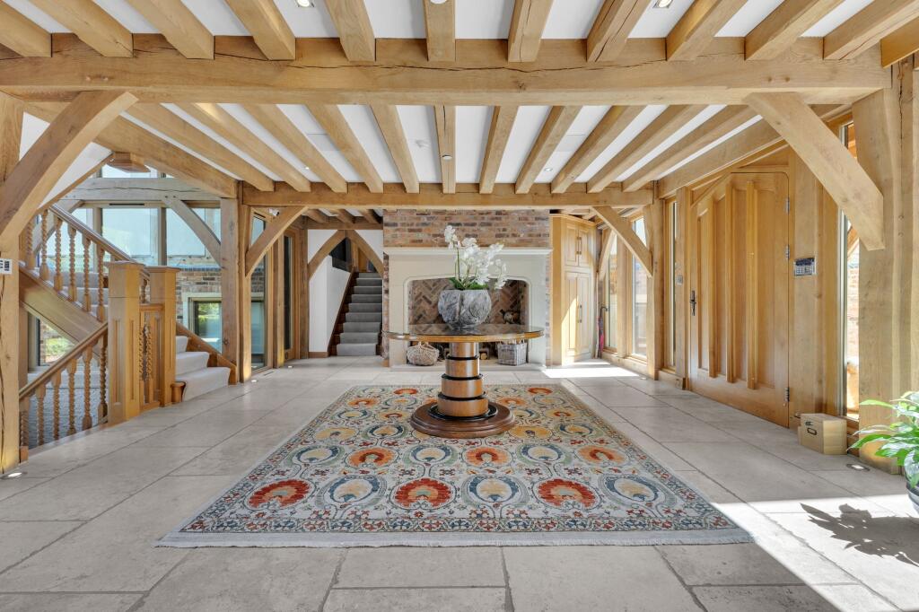 Arranged over four floors, Hanson Hall blends key original features from a dismantled medieval barn including timber beams & vaulted ceilings with modern luxury living, offering versatile and stylish living spaces perfect for family life.