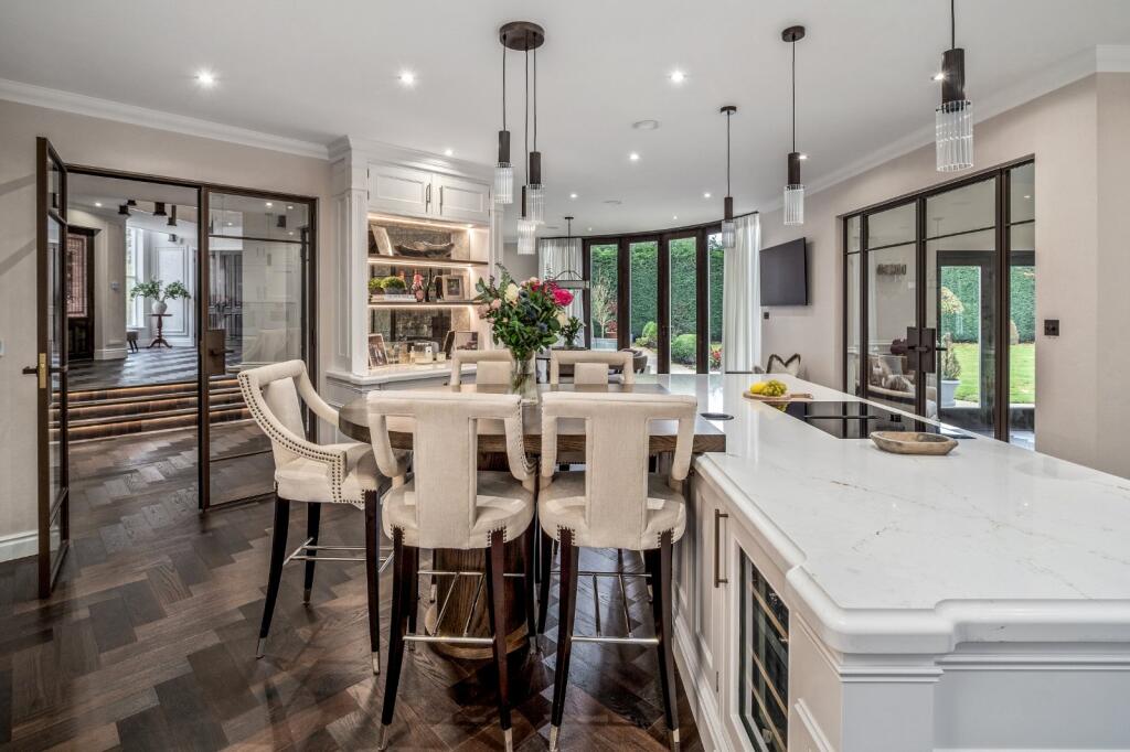 • Gourmet Kitchen – Features premium appliances including a Gaggenau cooker, wine cooler, warming drawer, and double quartz worktops.