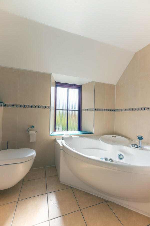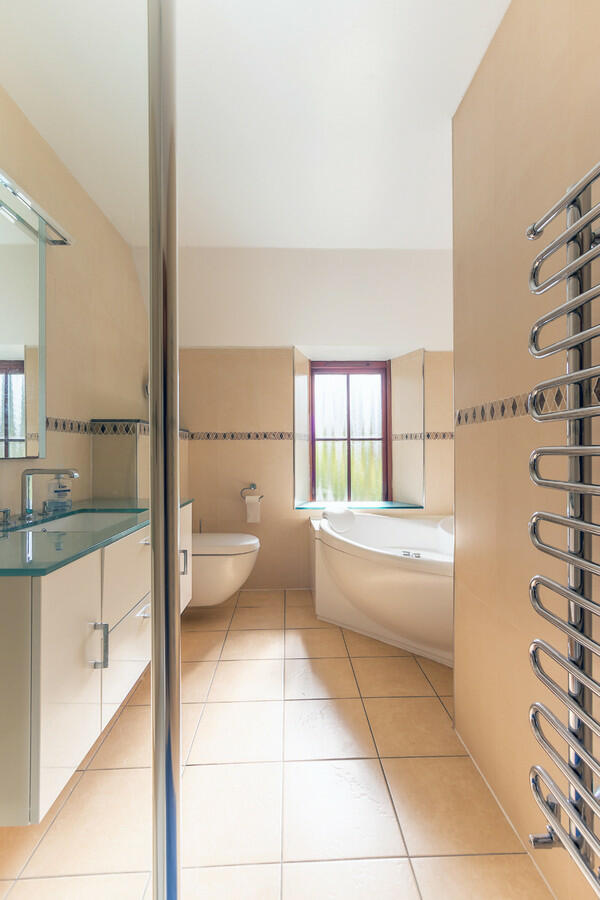The first floor is has with a striking family bathroom featuring a jacuzzi bath, tiled walls and floor, and underfloor heating.