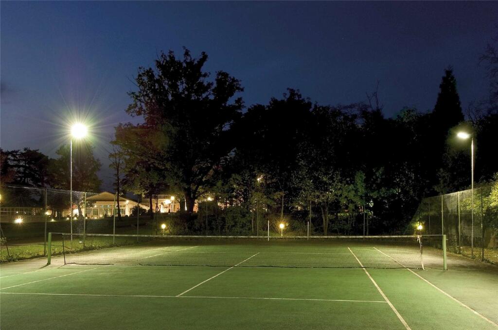 A prominent feature within the leisure facilities is the indoor pool complex which has an illuminated wave shaped roof. Other features include an indoor squash court, steam room, gymnasium and a cinema room.