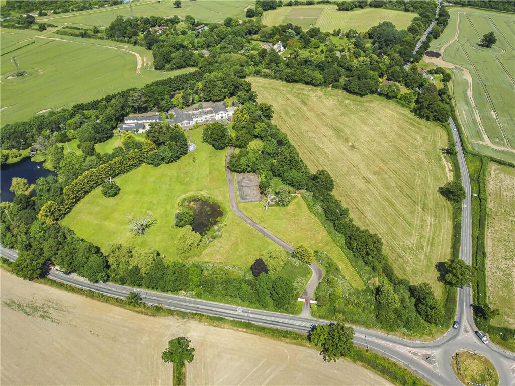 This private residence, which is set behind a gated access, is totally secluded from the surrounding area and is approached via a deep snaking illuminated drive which takes you through the eight acres of parkland, past the lake and the tennis court and sets you at the doors of a magnificent entrance which is highlighted by a central ornamental fountain.