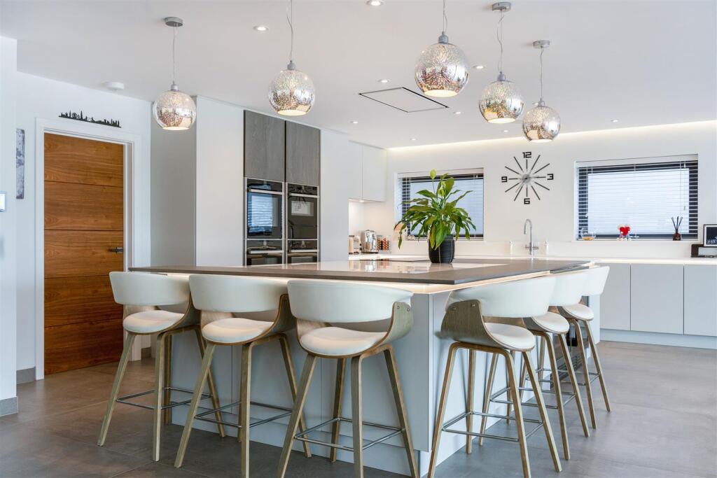 The generous and well appointed accommodation on the ground floor comprises an impressive 37ft kitchen/dining/family room with direct access through oversized sliding doors to the extensive terrace, a study, imposing entrance hall and w/c. Access to the double garage is via the utility room.