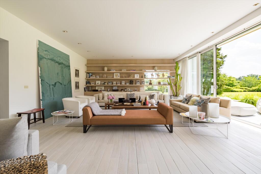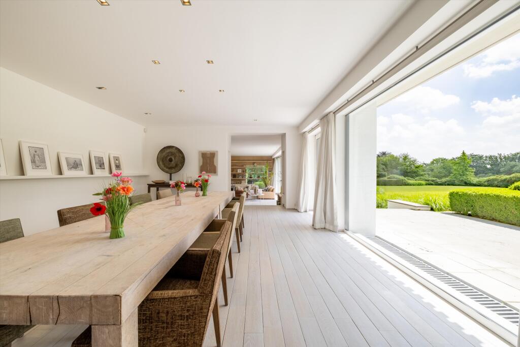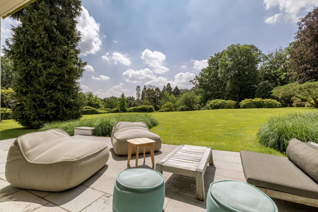 It offers spacious reception rooms opening onto terraces and garden, a fully