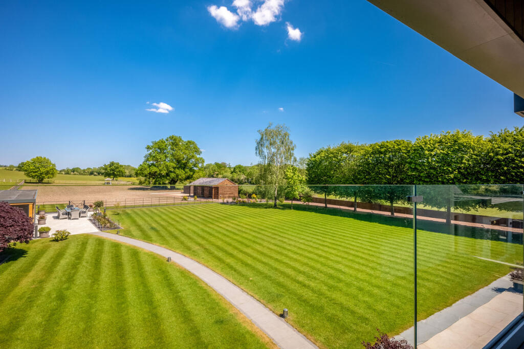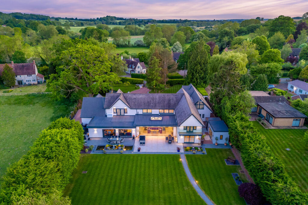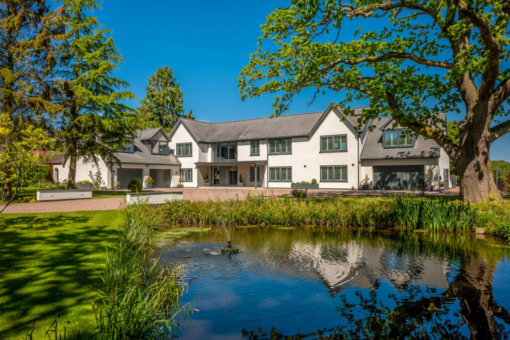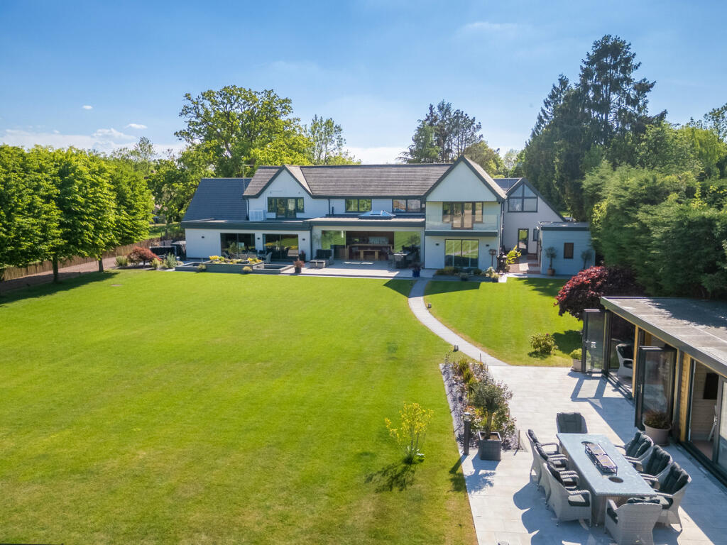This spectacular country home set in circa 1.7 acres of beautifully mature grounds and surrounded by open countryside has luxurious finishings and features spacious flexible living accommodation, five-bedrooms all with ensuites, a separate gym, air-conditioned garden room with a fully fitted kitchen and potential for fantastic equestrian facilities or further leisure facilities as desired.