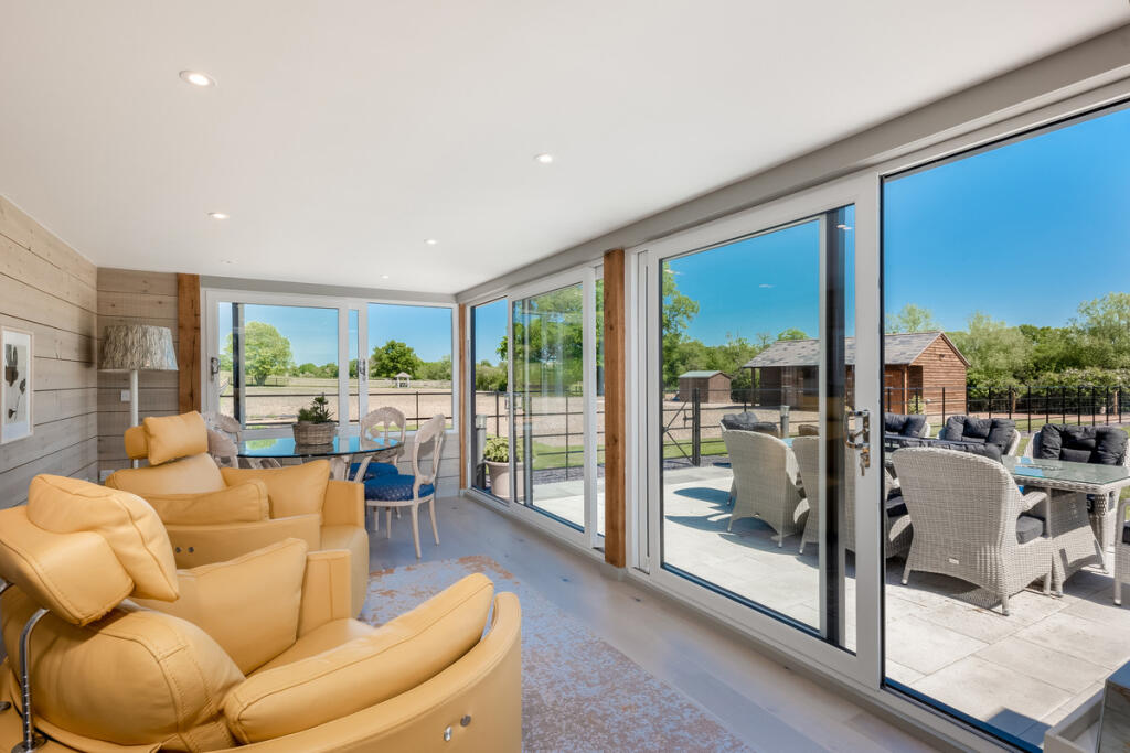 To the far end of the garden is a fully insulated and air-conditioned timber framed garden room which is connected to both electricity and water. Featuring a fully fitted garden kitchen and living space this versatile space opens out onto a large patio area through both bifold and sliding doors. Providing the perfect area for entertaining all year round whilst enjoying the ever-changing countryside views.