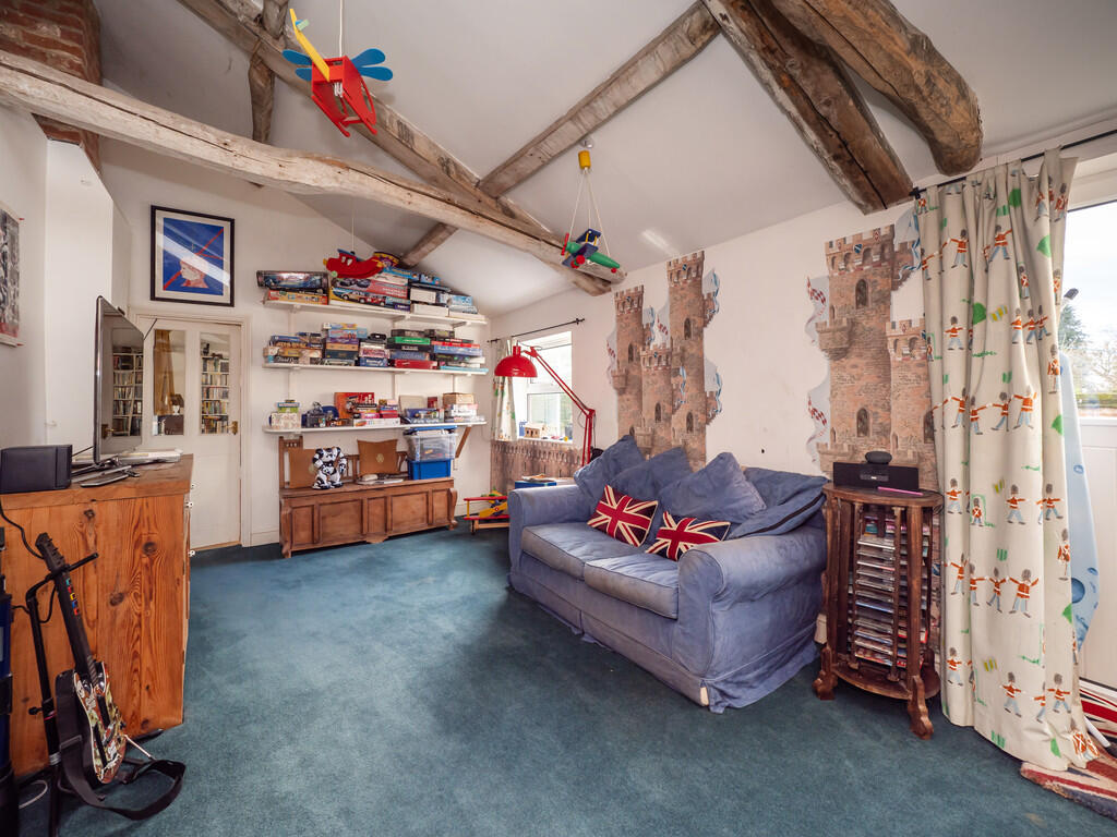 Accessed from the kitchen is a spacious playroom and beyond this an office with small library. To the other end of the kitchen is a boot room and downstairs loo.