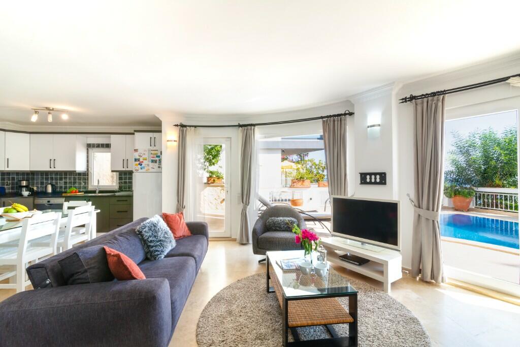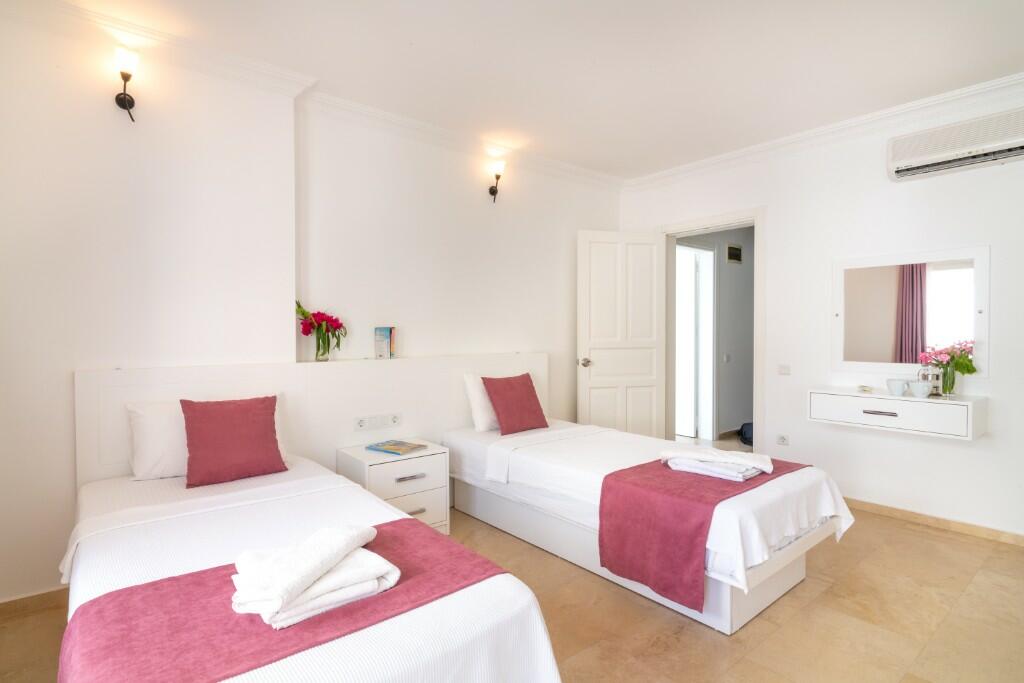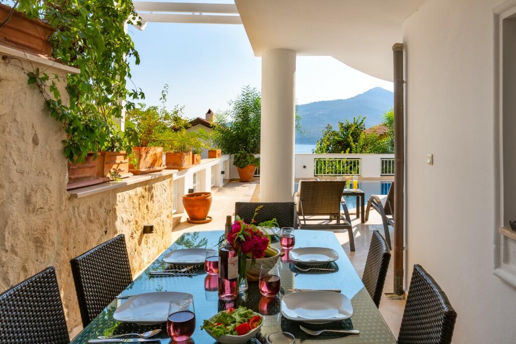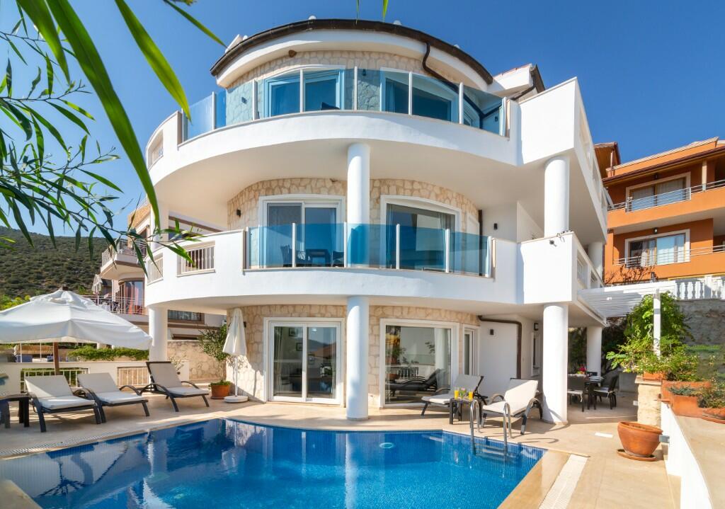 4+1 villa with large balcony and private pool, in Kalkan Kalamar bay, few steps from the sea. Each bedroom has its own private bathroom; large double room in two rooms; The other two rooms each have two single beds. The sale price including full furnish and white good. Large lovely Living room open to designed kitchen, The kitchen have full equipments too. It has own private pool and an area around the pool suitable for dining and barbeque. Villa have glass balconies which you can see the view uninterrupted from the bedrooms. It is in one of the peacefull places in Kalkan, and you can go down to the beach platform. You can also use the facilities of Kalkan's most popular boutique hotel, which is just three or five steps away. There is a cloakroom at the entrance of villa, as well as sufficient storage cabinets. It benefits from all the possibilities of technology with full wi-fi and satellite antennas for TV. It is a villa suitable for the Weekly Rental market and is equipped to meet all the needs of its guests.