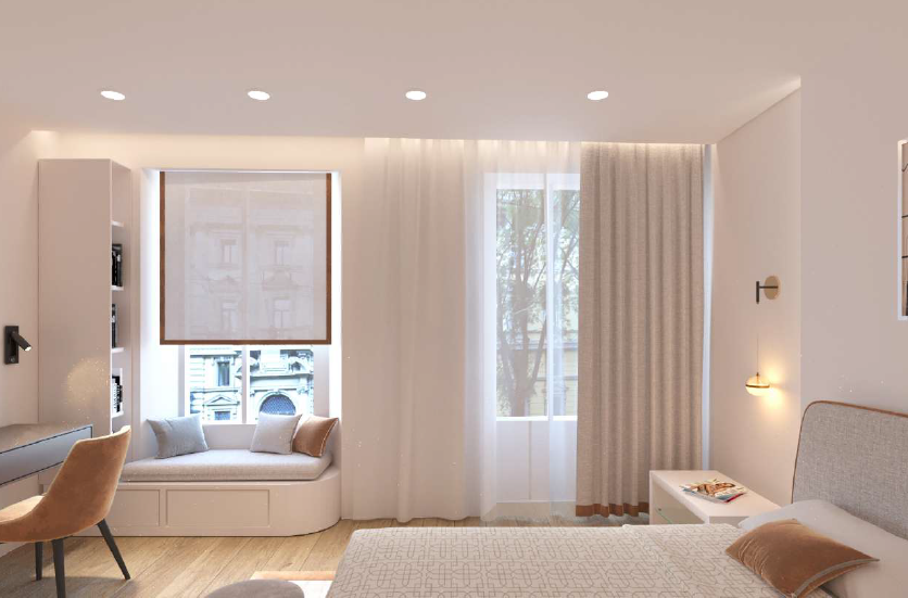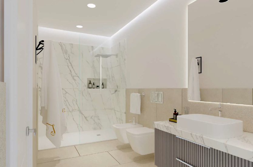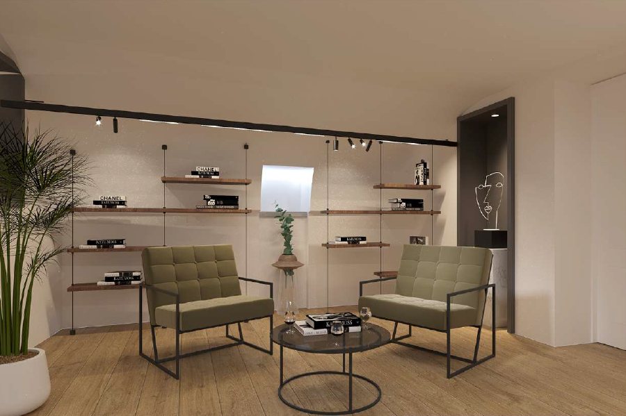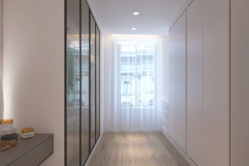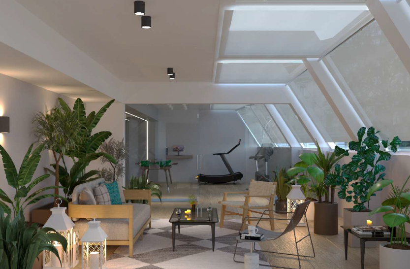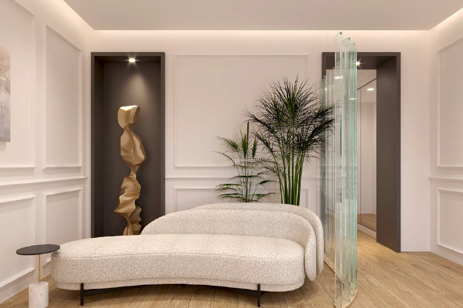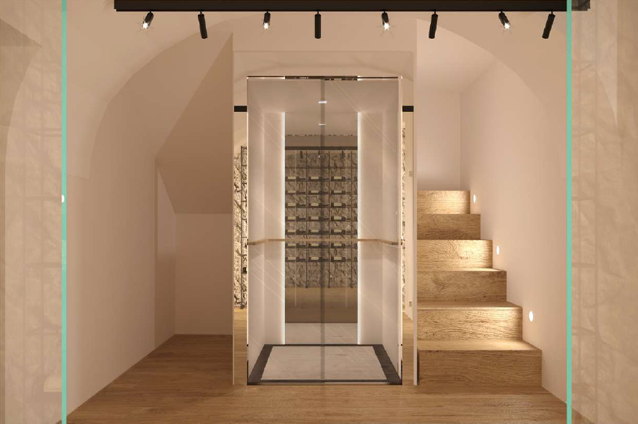 We can consider it almost a townhouse, as it has its own entrance, reception area, and a dedicated lift connecting all levels. In the basement, as shown in the renderings, there is a wine cellar, which could also be converted into a home theatre or a cosy spa area.