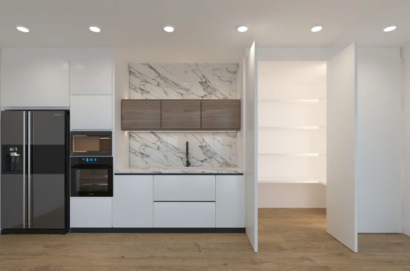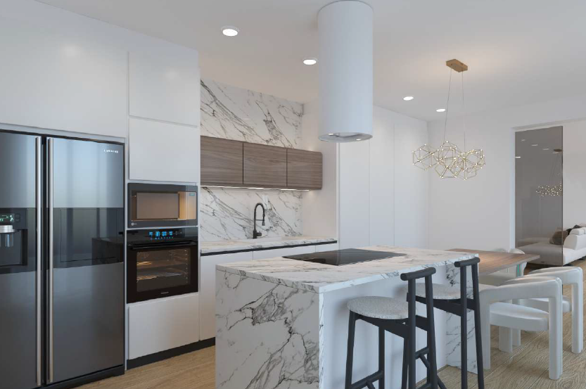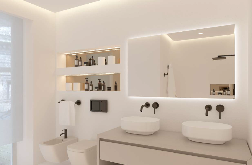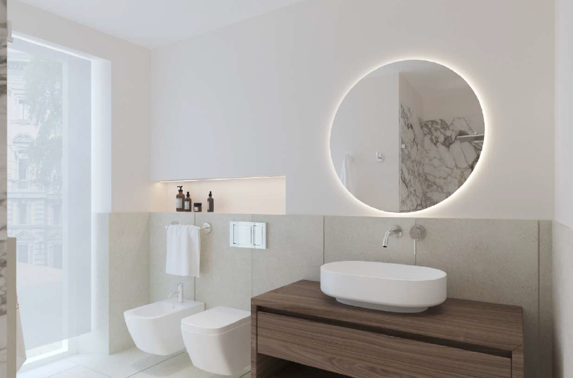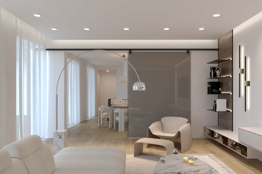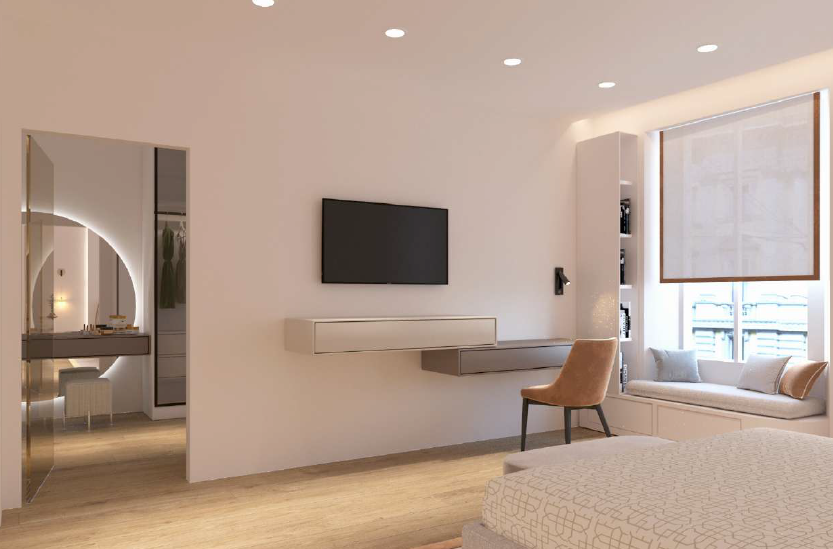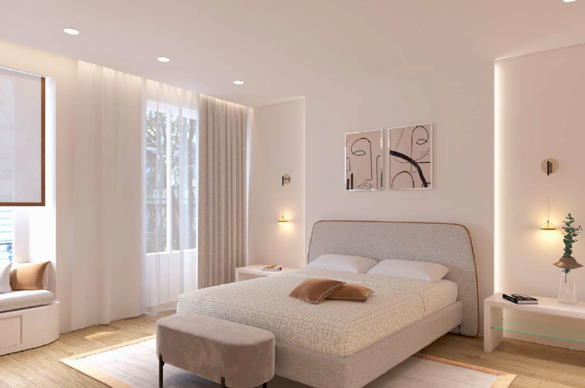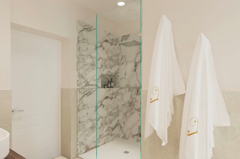 We can consider it almost a townhouse, as it has its own entrance, reception area, and a dedicated lift connecting all levels. In the basement, as shown in the renderings, there is a wine cellar, which could also be converted into a home theatre or a cosy spa area.