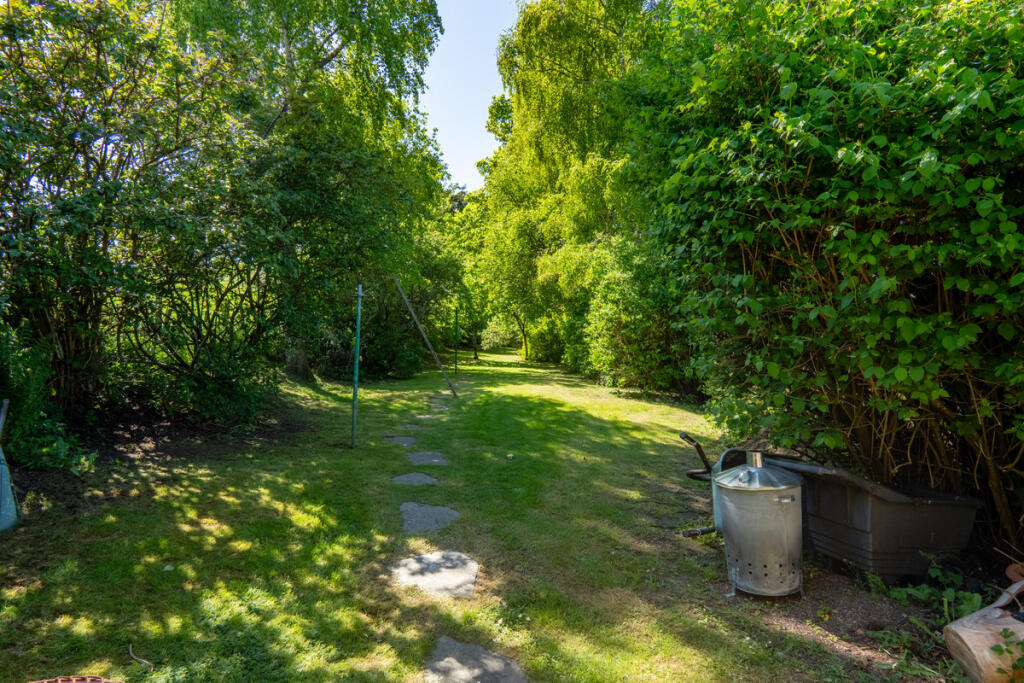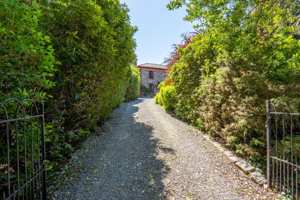 The outdoor space is just as impressive as the interior. In total, the grounds extend to approximately one acre, with sweeping lawn sections, mature trees and well-kept borders. Just outside the sunroom is a paved seating area that’s ideal for outdoor dining or relaxing in the warmer months. There are archways, pathways and stone walls dotted throughout, giving the garden a sense of purpose and variety. There are also multiple outbuildings, including two linked sheds, a greenhouse and further external storage, making this a practical as well as picturesque home.