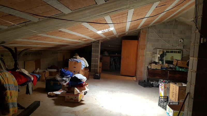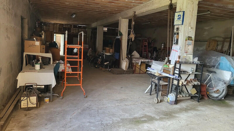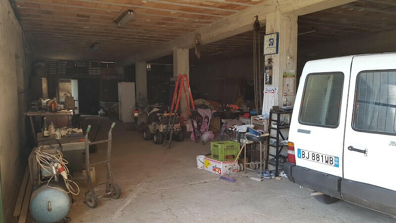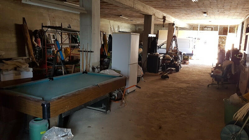 The garage is some 300m2 has a large entrance at each end, both with full size locking metal doors. There is possible scope to construct further buildings on the plot subject to planning permission.