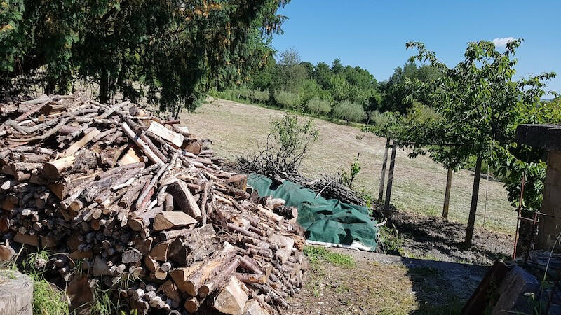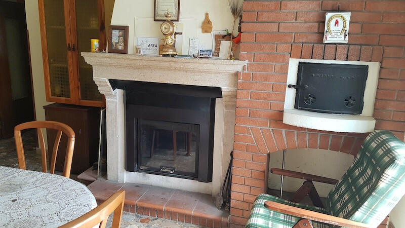 There is an open fireplace upstairs, and one downstairs along with a wood burning oven. Heating is by gas boiler-fed hot water radiators.