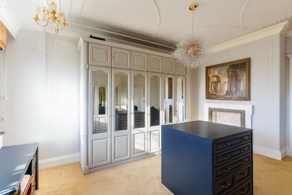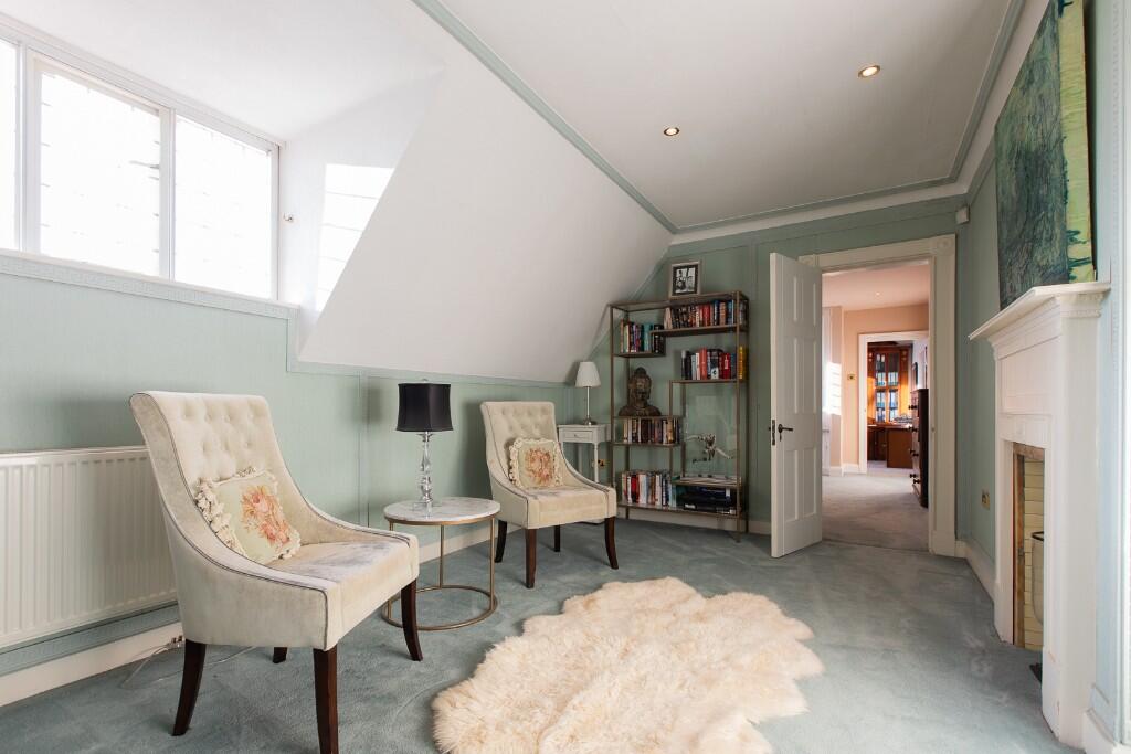 The upper floors are accessed via either the main octagonal staircase or the 'servants stairs' closer to the kitchen. There is an impressive master suite with expansive views over the garden, seating area and an open fire. A new bathroom with double sinks, large shower and roll top bath is adjacent, as is the fully fitted dressing room.