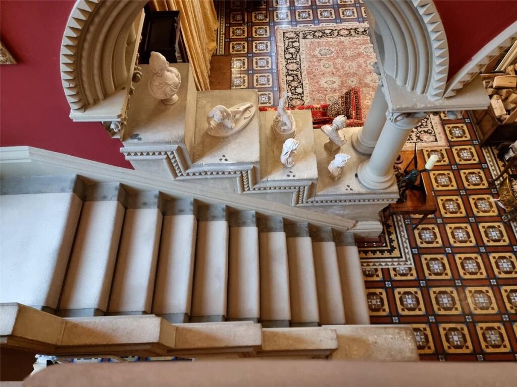 One of the standout features of Northorpe Hall is its stunning double-height stained glass windows adorned with heraldic panels, flooding the interior with natural light and adding a touch of historical grandeur.