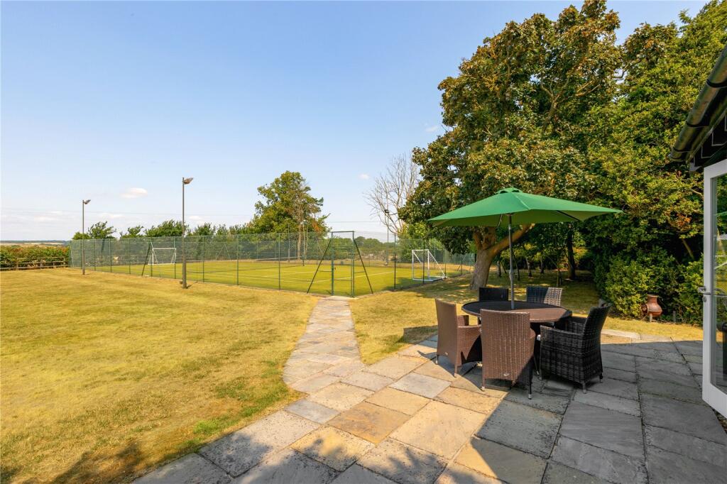 The grounds are a major highlight, extending to 6.5 acres, with beautifully maintained lawns, mature trees and hedging offering a high degree of privacy. A large terrace extends from the house and offers a great space for outdoor dining and entertaining. There is a separate annexe which includes a large living room, kitchenette, shower room and a bedroom, which could be used as a home office or further accommodation if required. Within the grounds there is a modern, beautiful summer house with far reaching views which offers a great entertaining space all year round and sits perfectly next to the astro turf weather tennis court.