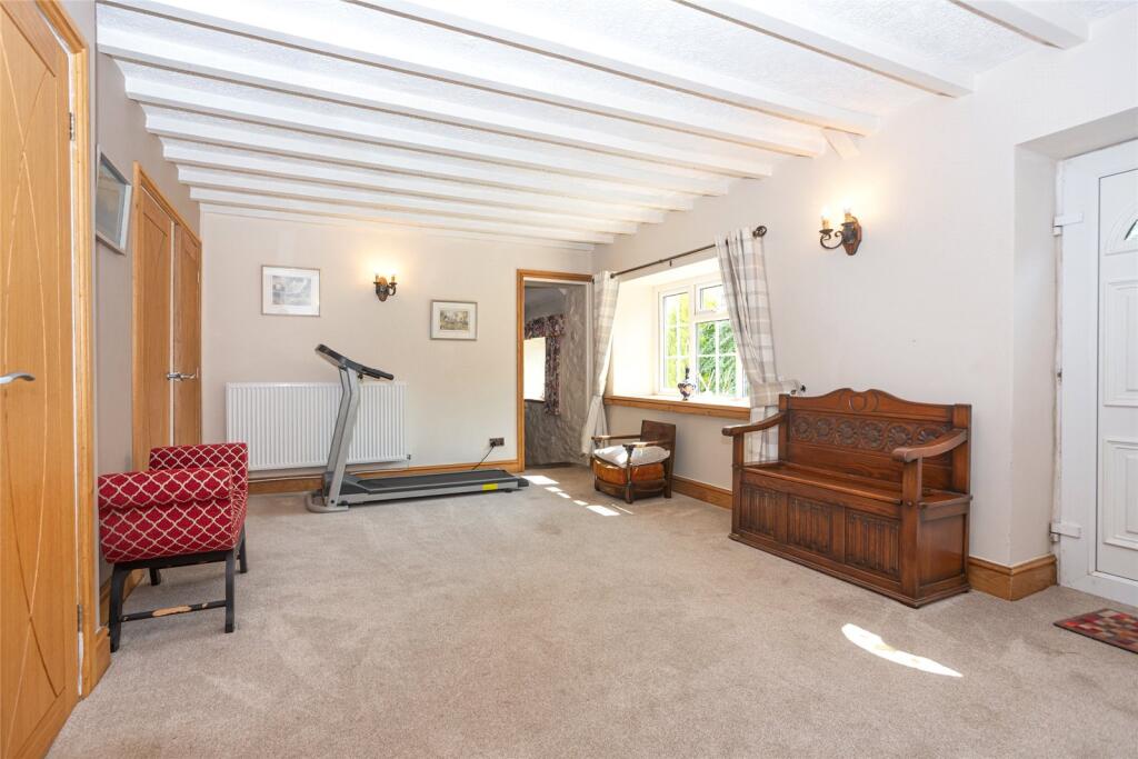 The main dwelling was extended some 10 years earlier which included the addition of a sizeable attached Garage. The interior offers generous accommodation with 3 distinctly differing reception rooms (offering much charm and character), an impressive kitchen/dining/family room, garden room, utility, store rooms, 5 bedrooms (3 with en-suite) and luxury bathroom – the interior incorporates a fine blend of the old and new whilst offering practicality and versatility in equal measure. The garage has electrically operated doors and storage facility to the roof space – its would make a fine workshop that’s for sure. The former farmhouse offers three bedrooms (one en-suite) together with a kitchen/diner, living room and family bathroom. The 3 additional cottages were converted from what were former farm outbuildings, and now each provide two-bedroom accommodation and purposely fashioned to be modern, functional and pleasing on the eye. Beautiful lawned and well-stocked gardens reside to the southerly aspect of the main residence, offering seclusion and much for youngsters to enjoy whilst the cottages equally enjoy spacious private outdoor space.