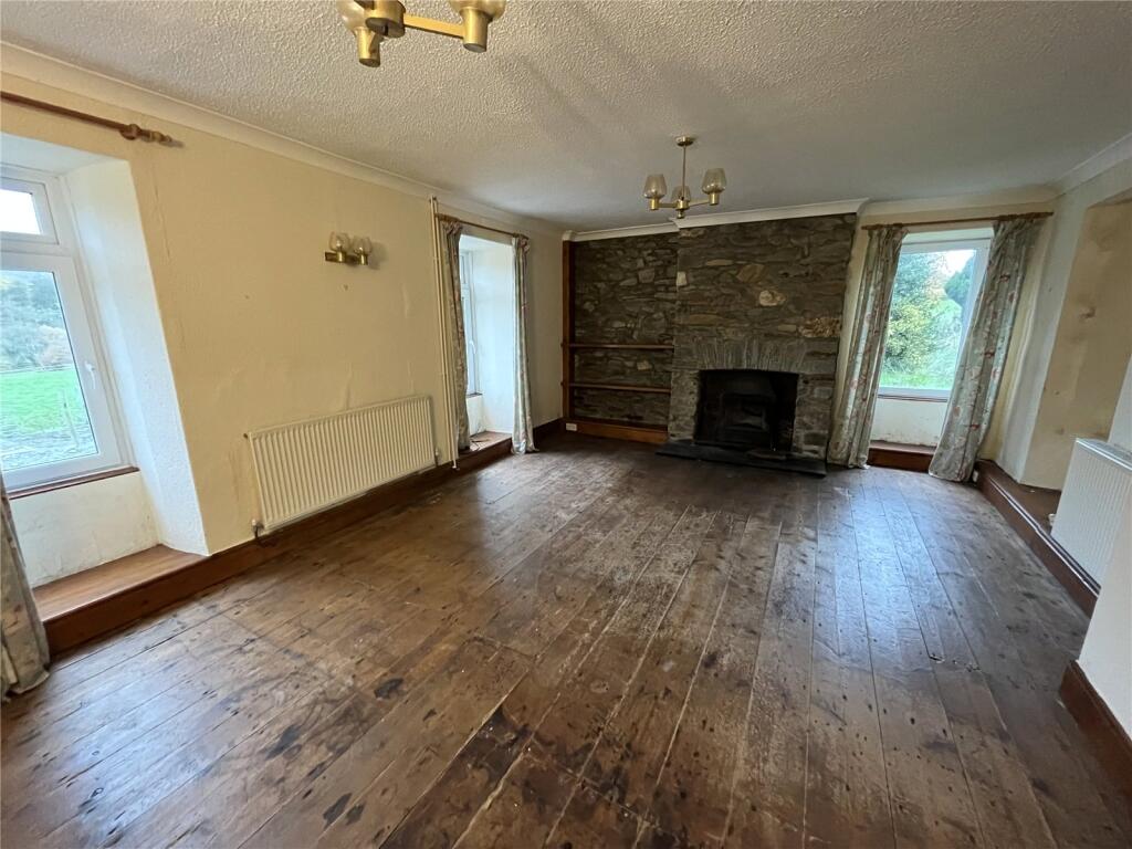 Tanycoed Farmhouse is an attractive semi-detached residence of stone and rendered construction, benefiting from predominantly uPVC double glazing. Centrally positioned within the farmstead and surrounded by the majority of the holding, the property offers an excellent opportunity for sympathetic modernisation. Purchasers have the scope to update the farmhouse to their own tastes while preserving its charming original features, including exposed timber beams and characterful stone fireplaces. The accommodation is generously proportioned, comprising five bedrooms; four of which are doubles on the first floor, alongside two reception rooms, a kitchen, and a utility room on the ground floor, creating a flexible and welcoming layout ideal for family living.