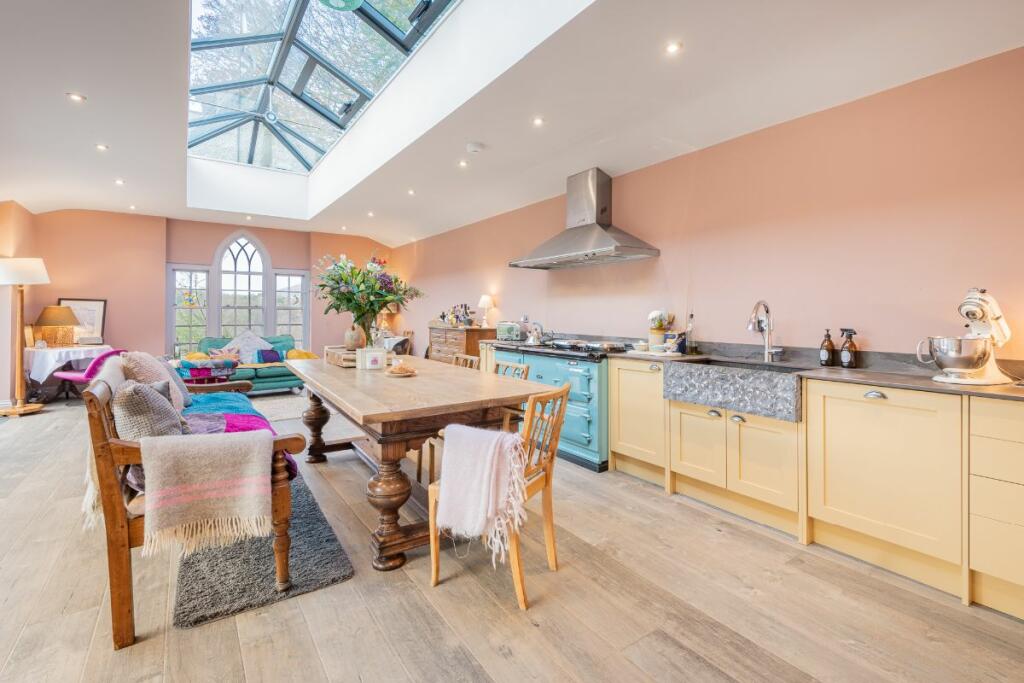Invite friends and family for dinner parties and casual meals where there is space enough for all. Flow into the kitchen where an Aga provides warmth and adds to the ambience and with plenty of cabinetry and worktop space, it's a chef's dream.