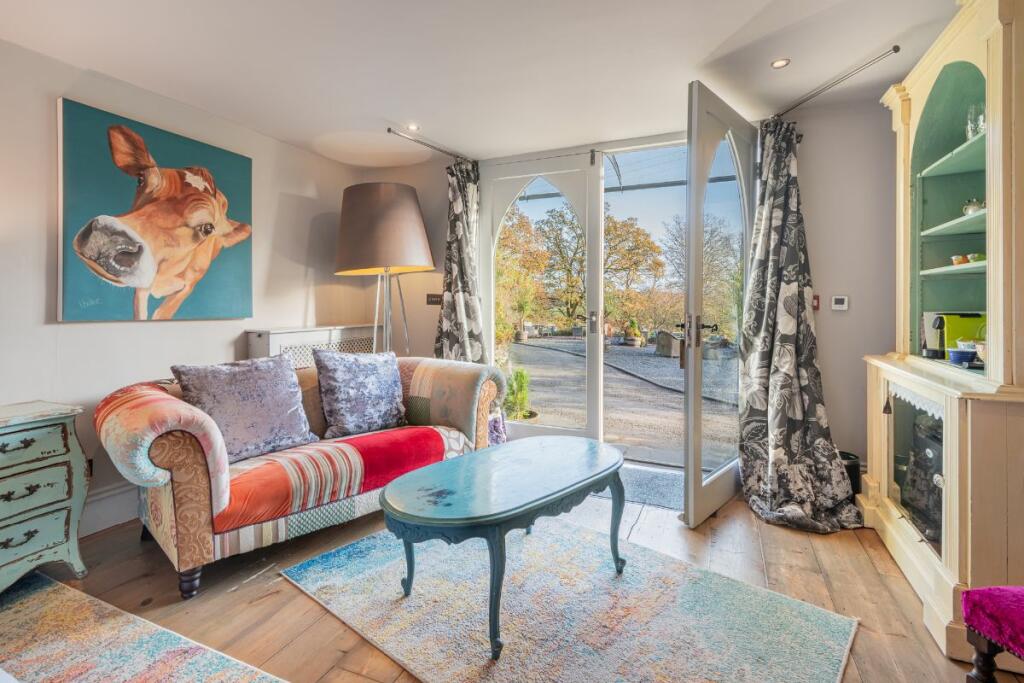 Flow through to the snug, where the Gothic style windows showcase the gardens and add character and light. With oak flooring and gas fire, it's the ideal spot to enjoy movie nights with the family.