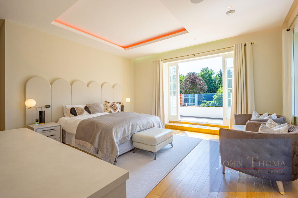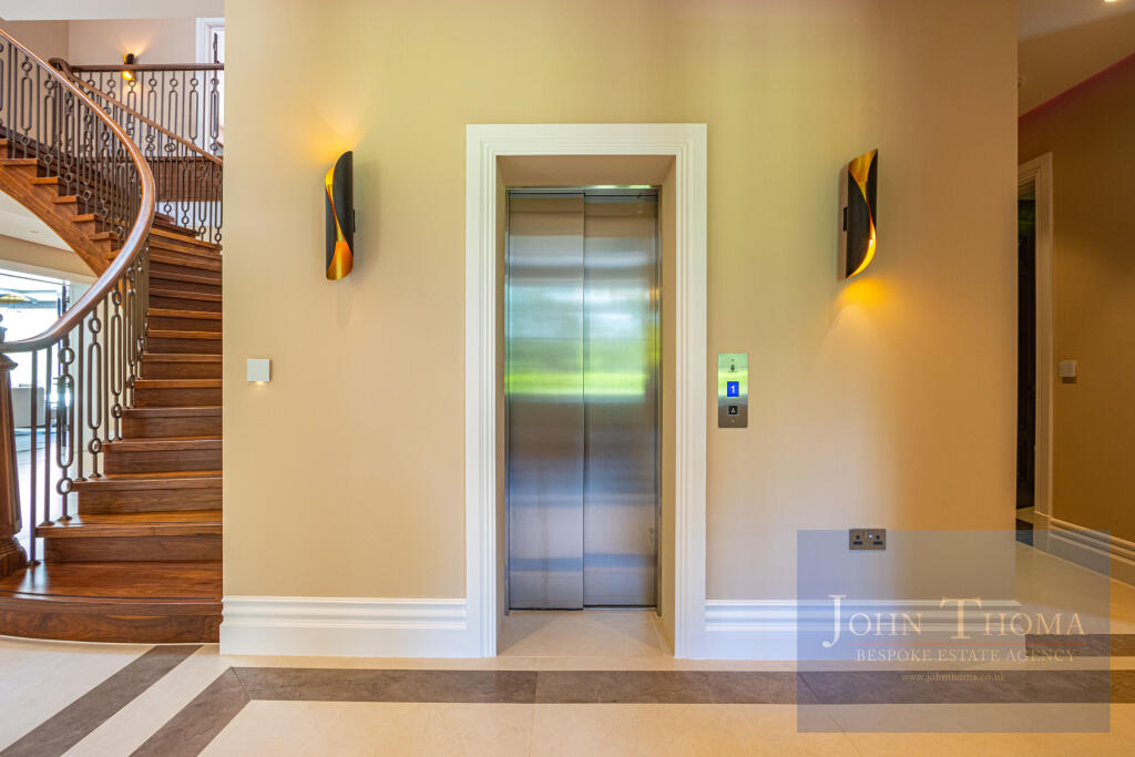 This magnificent property boasts six-bedroom suites in the main house, with the master suite featuring "his and hers" dressing rooms and ensuites. A wonderful feature of the master suite is the balcony which overlooks the beautifully landscaped gardens. Throughout the home, there are areas for the family to relax to include a pyjama/coffee area overlooking the galleried staircase on the first floor. A further lounge suite on the top floor creates a perfect self-contained area for teenagers or grandparents seeking privacy. The house also benefits from a secondary staircase to the first floor and a lift.