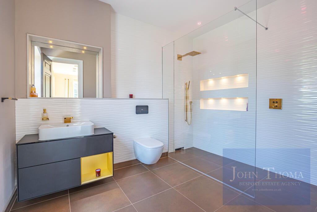 The entire home is equipped with smart home features to include a Loxone lighting and home automation system, allowing seamless control of lighting, security, and entertainment from your phone. Every consideration has been given in the design, with numerous cloakrooms, a boot room, laundry facilities on both the ground and first floors, and ample storage within the walk-in eves.