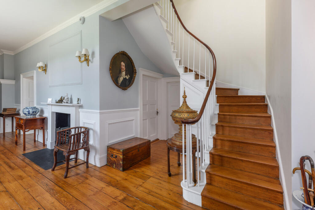 East and West Wing staircases to the second floor, Under stair cupboard, Wood panelling, Sash windows, Exposed wood floor.