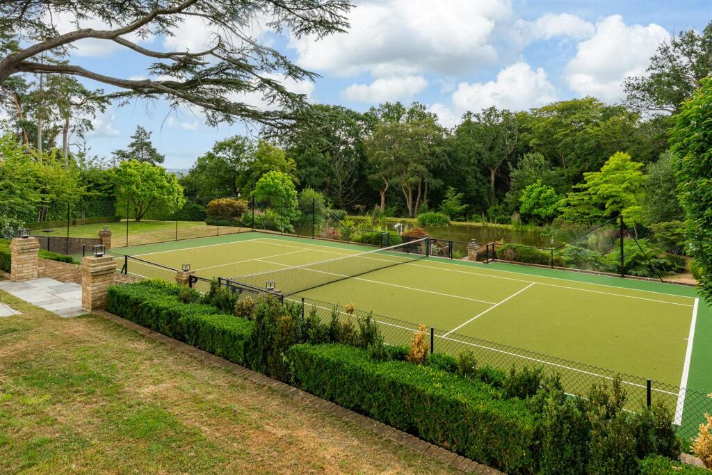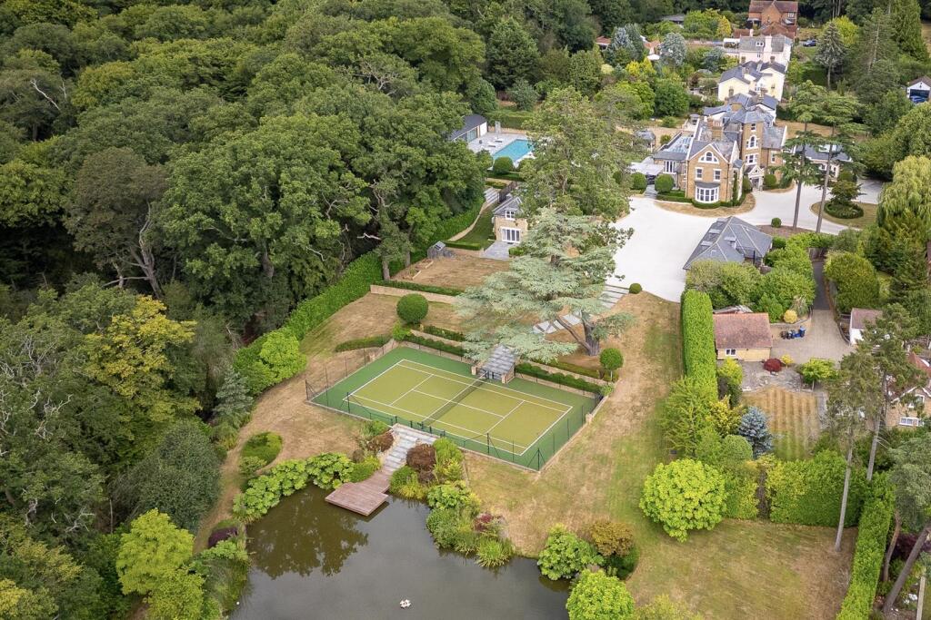 The impeccably landscaped grounds showcase elegant tiered gardens, formal box hedging, sculpted topiary, mature trees and a picturesque lake with an integrated water feature. The estate is equipped with extensive outdoor lighting, a state-of-the-art irrigation system, and a comprehensive CCTV network for enhanced security and convenience.