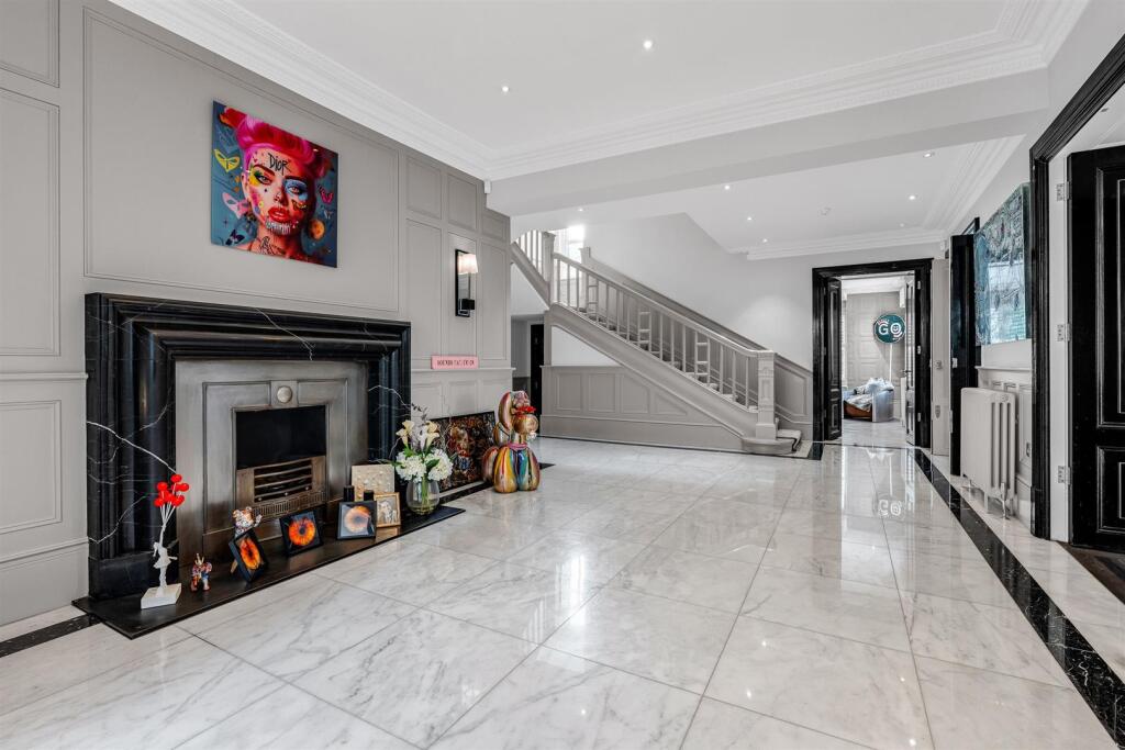 The main house spans over 10,000 sq ft and is arranged over four floors, offering expansive and elegant accommodation throughout. Upon entering the grand marble-floored entrance hall, visitors are immediately struck by the attention to detail and sense of scale.