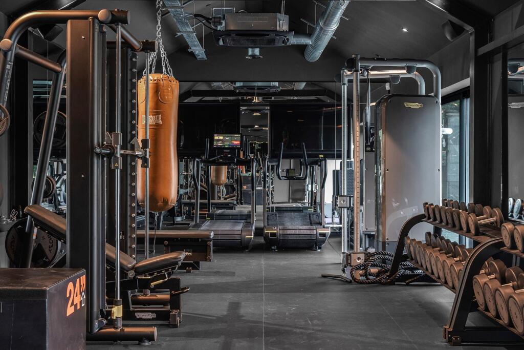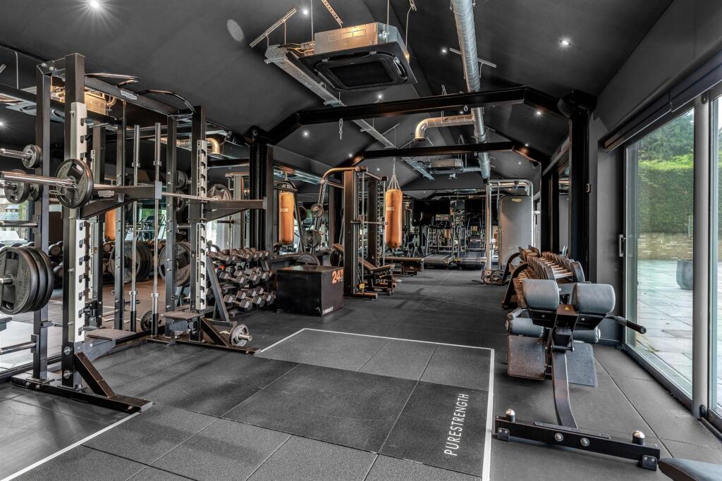 The pool house is an impressive structure in its own right. It features a spacious, state-of-the-art gym equipped with Technogym machines, a modern changing room with a MegaSun sunbed, and a relaxing steam room.