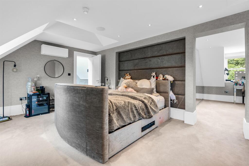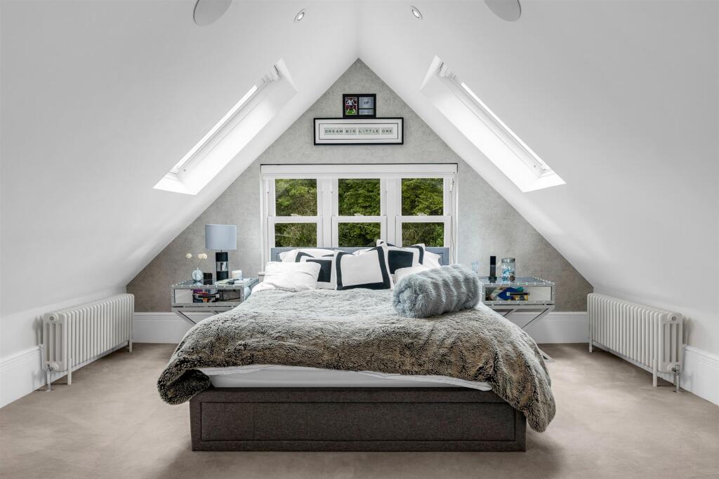 The top floor hosts four further bedroom suites, each finished to a luxurious specification. Every room features an en suite bathroom with either a Duravit egg bath or Porcelanosa shower, and three of the suites include private dressing rooms.