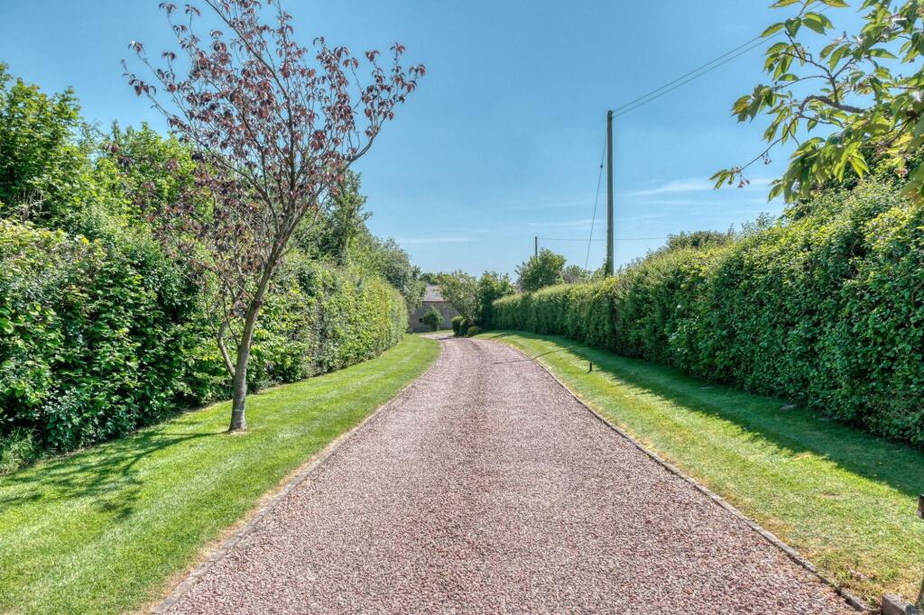A private driveway welcomes you to this exceptional property, splitting to provide direct access to both the main residence and an array of outbuildings including a bespoke triple garage, former dairy, workshop, stone barn, and timber barns.