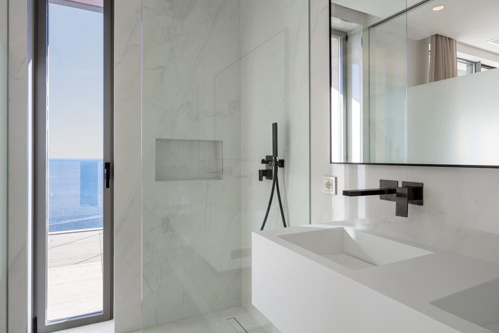 Upper Level: A Sanctuary of Tranquillity The upper floor is dedicated to the sleeping quarters, with three ensuite guest bedrooms, each featuring fitted wardrobes, luxurious finishes, and private terrace access. The pièce de résistance is the master suite—a true sanctuary of indulgence. With its freestanding bathtub positioned to overlook the Mediterranean, a private terrace, and a spacious dressing area, the master suite redefines relaxation and luxury.