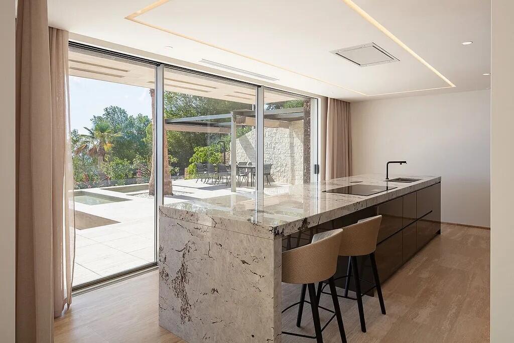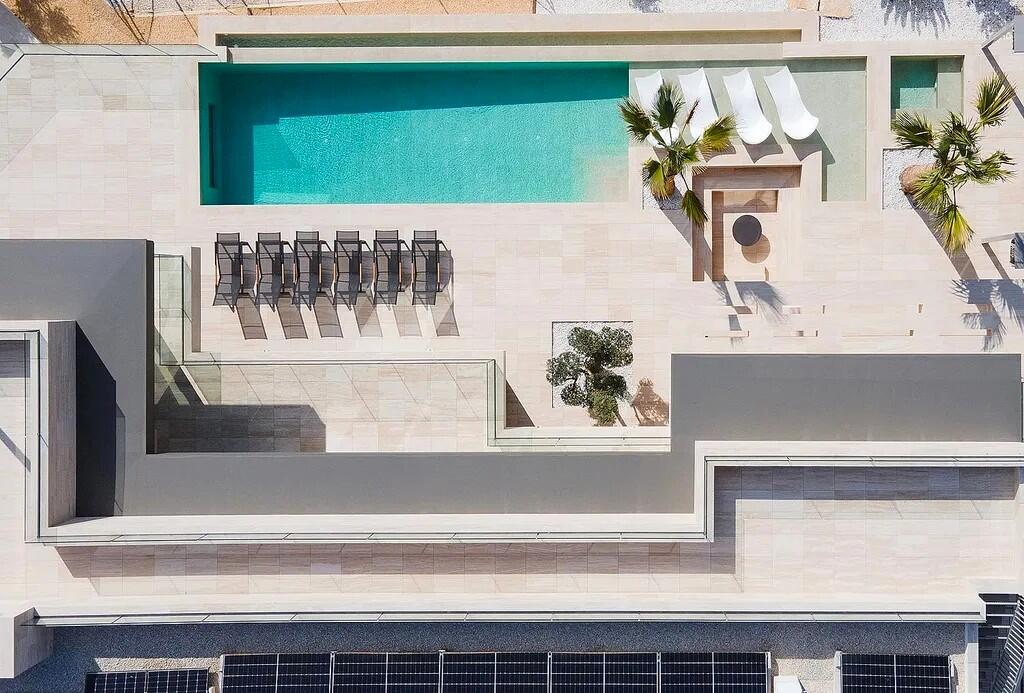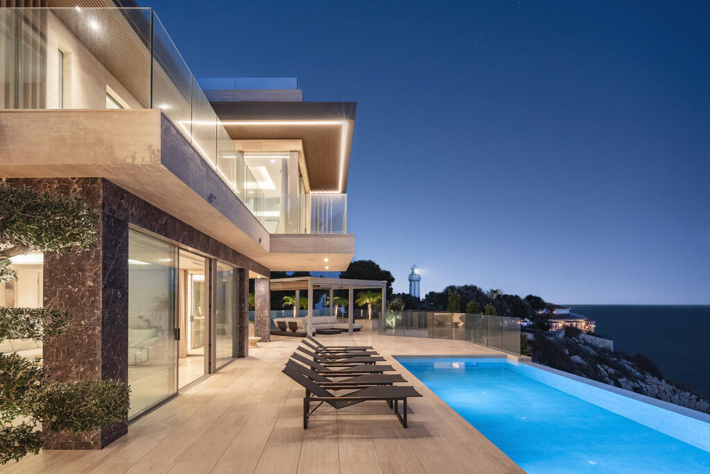 Technology and Comfort Equipped with cutting-edge home automation, the villa ensures effortless living. Smart systems control lighting, climate, pool temperatures, and security, all accessible remotely via an app. Underfloor heating, integrated sound systems, and ambient LED lighting enhance the property’s luxury. The villa also boasts an A-rated energy efficiency certification, ensuring sustainability alongside sophistication.