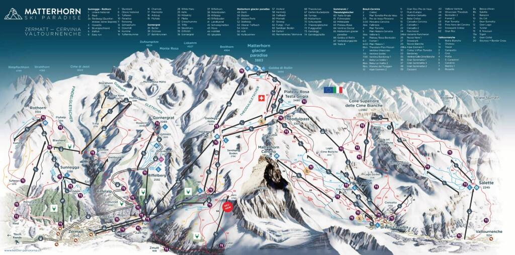 The "Alplink “ski lift has opened in July 2023 connecting Zermatt/Cervinia with the Monterosa ski area, creating the third largest ski area in the world.