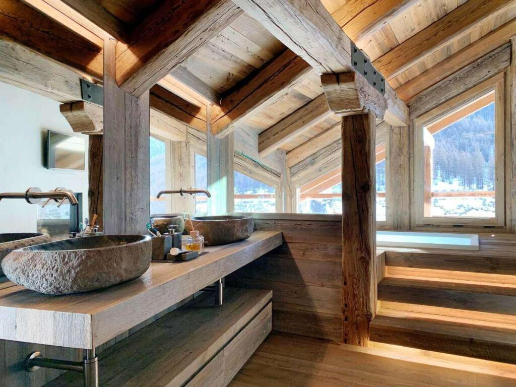 This luxury alpine home is characterized by floor to ceiling windows allowing to maximise the sunlight and fireplace in the living room; access to a large panoramic terrace suitable for outdoor dining, spacious kitchen, 5 bedrooms each with on-suite bathrooms, space for a home office, hobby room, vine cellar, private spa, ski storage. Private garage with lift access to all floors in the chalet.