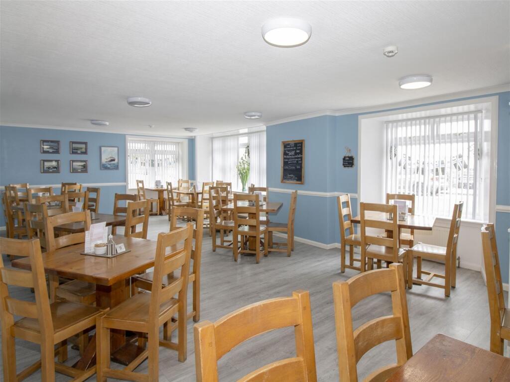 This is a spacious, modern café which has been extended into 3 distinct sections providing 86 covers. Décor is light and bright with the facilities being of a good standard. Picture windows face the harbour and benefit from being double glazed. Furniture is wooden and practical with a country kitchen feel. Trade is consistent, with operating hours 9am to 4pm, 6 days a week, there is scope to offer evening service, as well as offer Sunday opening. Future potential is exciting given the recent redevelopment of the harbour. The clean and functional aspects of this business are evident, but it also presents a warm and welcoming atmosphere. With a stylish and practical laminate floor and attractive servery, the natural feel of this establishment is apparent. The service point has a good quality countertop and display areas. This first area is presently set to 14 covers. An opening leads into the second café area which is currently laid to 26 covers and continues with the same style of décor into the main portion of the property which is located to the front of the building which benefits from harbour views. Within this area are the toilets which are fitted out to a high standard; there is a ladies/disabled facility and a gents toilet.